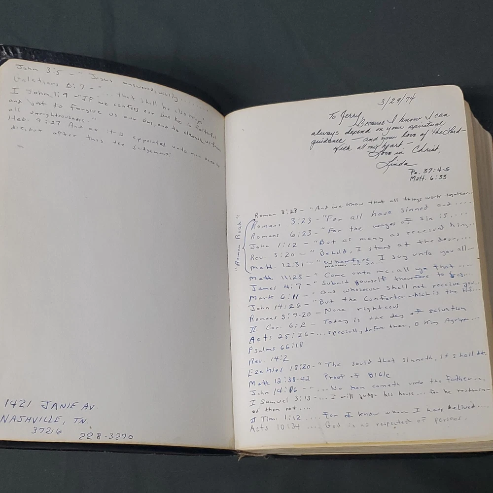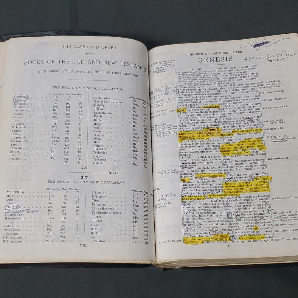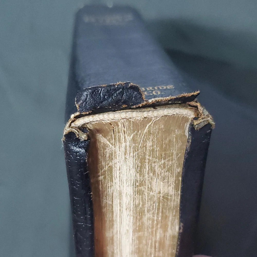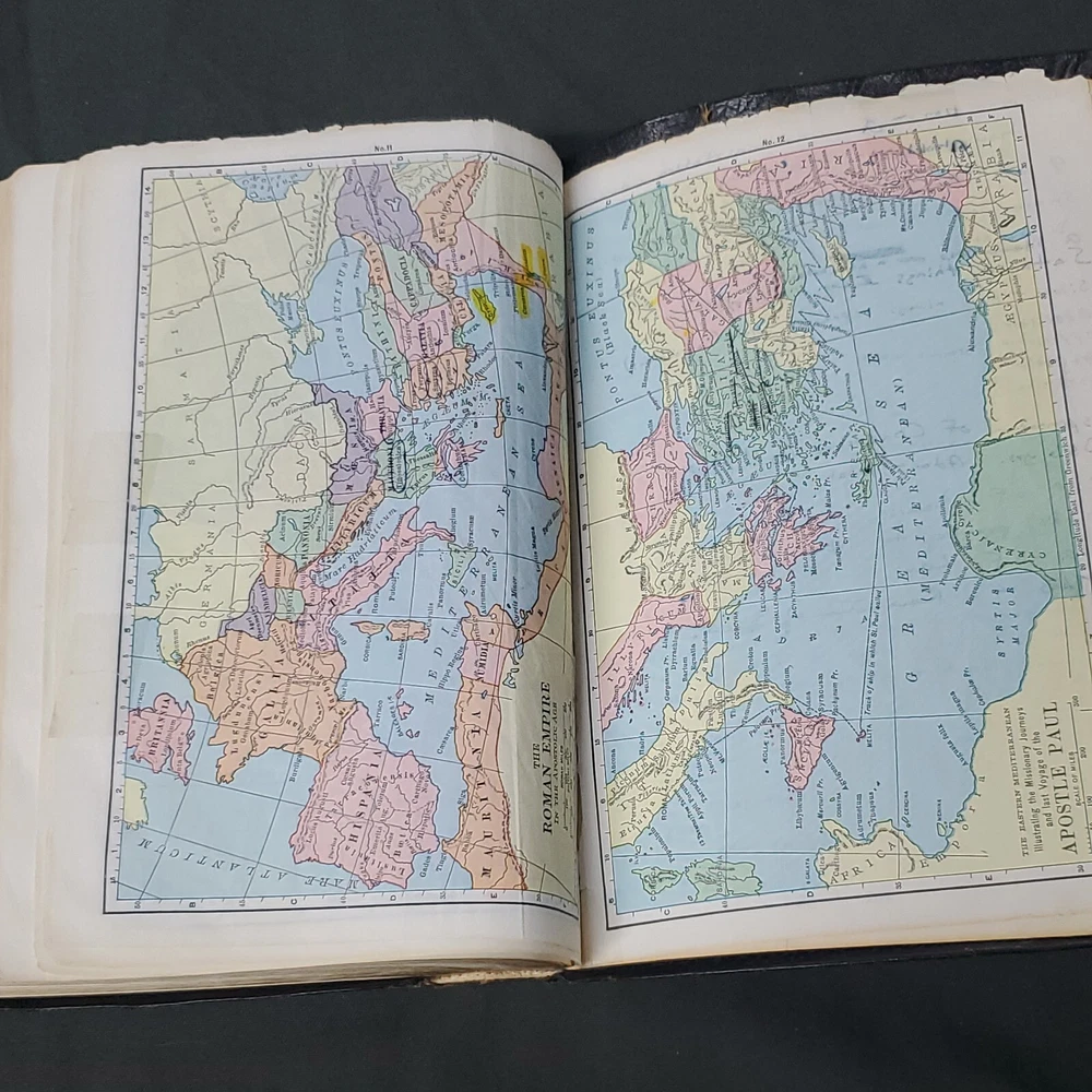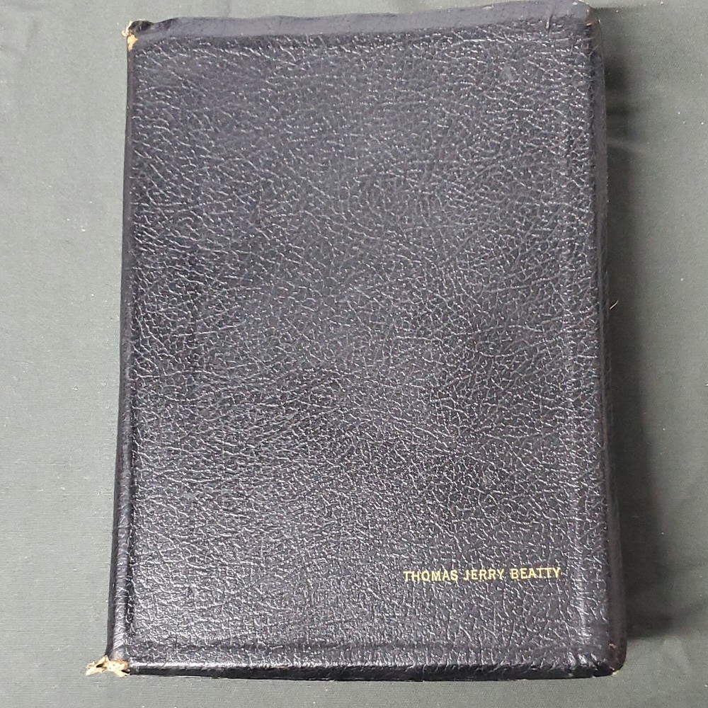 New Chain Reference Bible Thompson's 4th Improved Edition 1964 King James Version KJV. The New Chain Reference Bible Fourth Improved Edition" by Thompson. In the King James Version (KJV). 1964 by B. B. Kirkbride Bible Co. 55th reprint. Has name embossed on front cover as shown. In nice condition otherwise, showing some wear mainly on spine ends. Many markings notes highlighting. Old ribbon gone, new glued in. Weight is 2 lb 11 oz before packaging. 7 × 9¼ × 1½" Offers always considered. Thank you for looking. PS1-3bb.031124.34.9