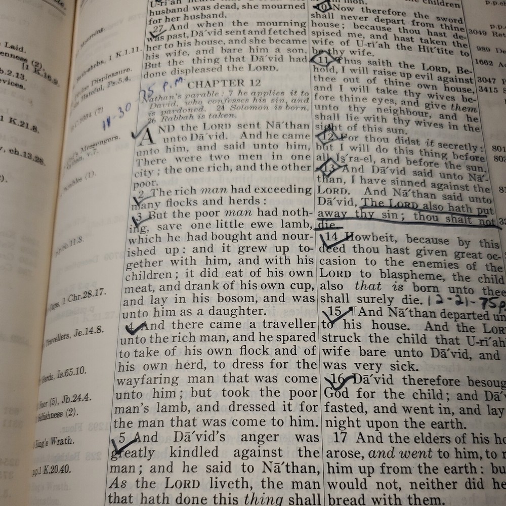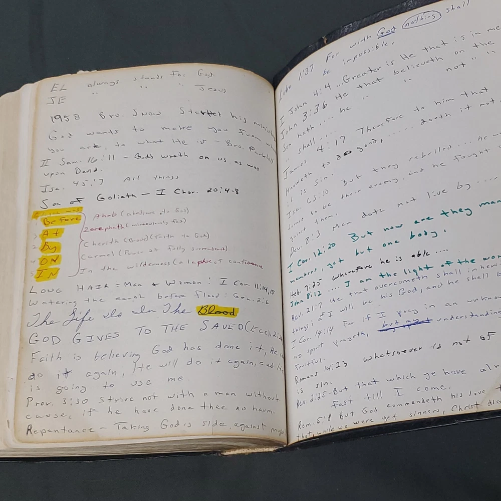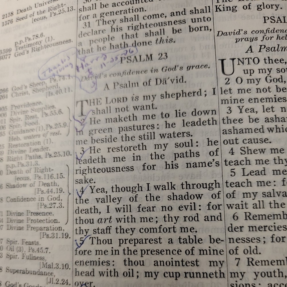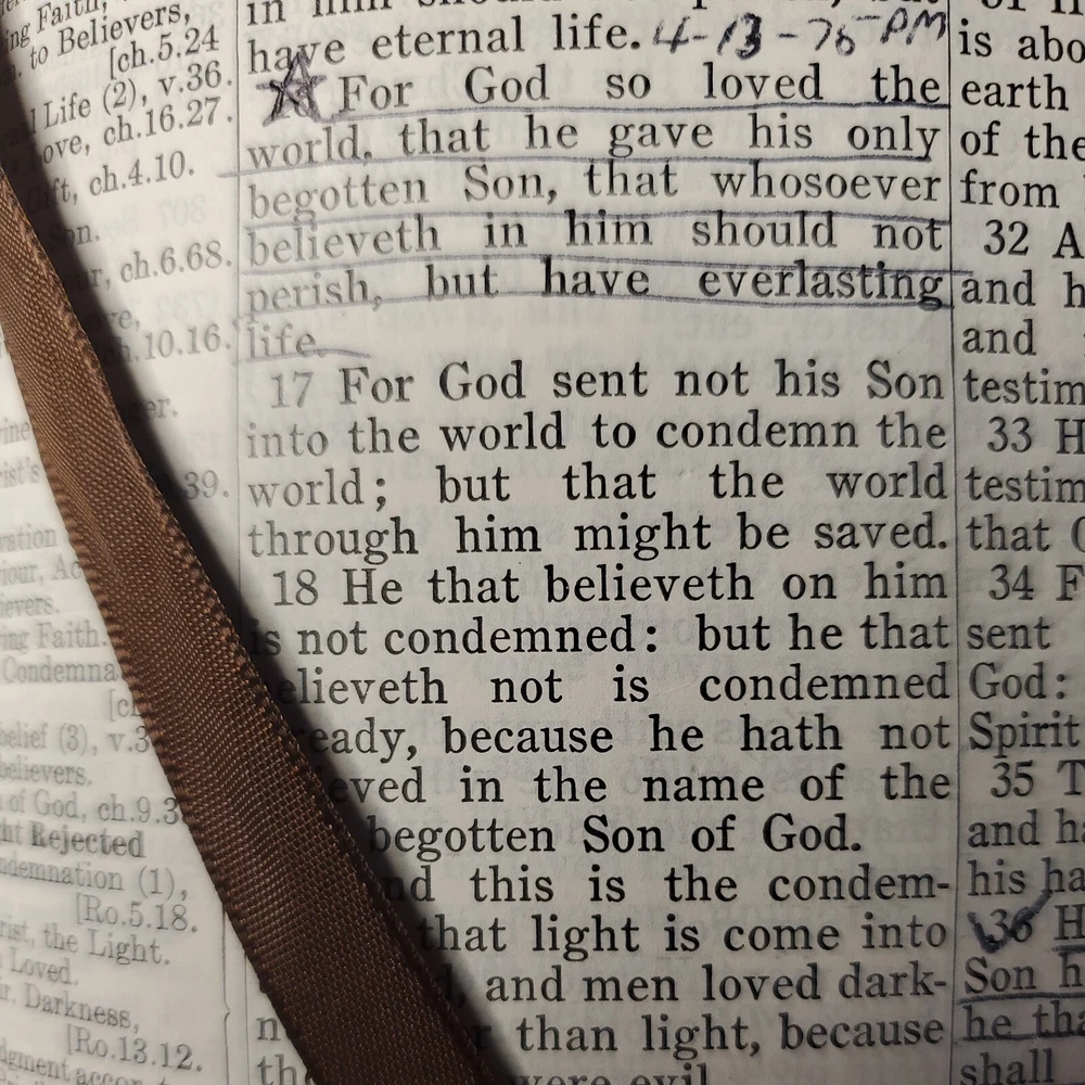 New Chain Reference Bible Thompson's 4th Improved Edition 1964 King James Version KJV. The New Chain Reference Bible Fourth Improved Edition" by Thompson. In the King James Version (KJV). 1964 by B. B. Kirkbride Bible Co. 55th reprint. Has name embossed on front cover as shown. In nice condition otherwise, showing some wear mainly on spine ends. Many markings notes highlighting. Old ribbon gone, new glued in. Weight is 2 lb 11 oz before packaging. 7 × 9¼ × 1½" Offers always considered. Thank you for looking. PS1-3bb.031124.34.9