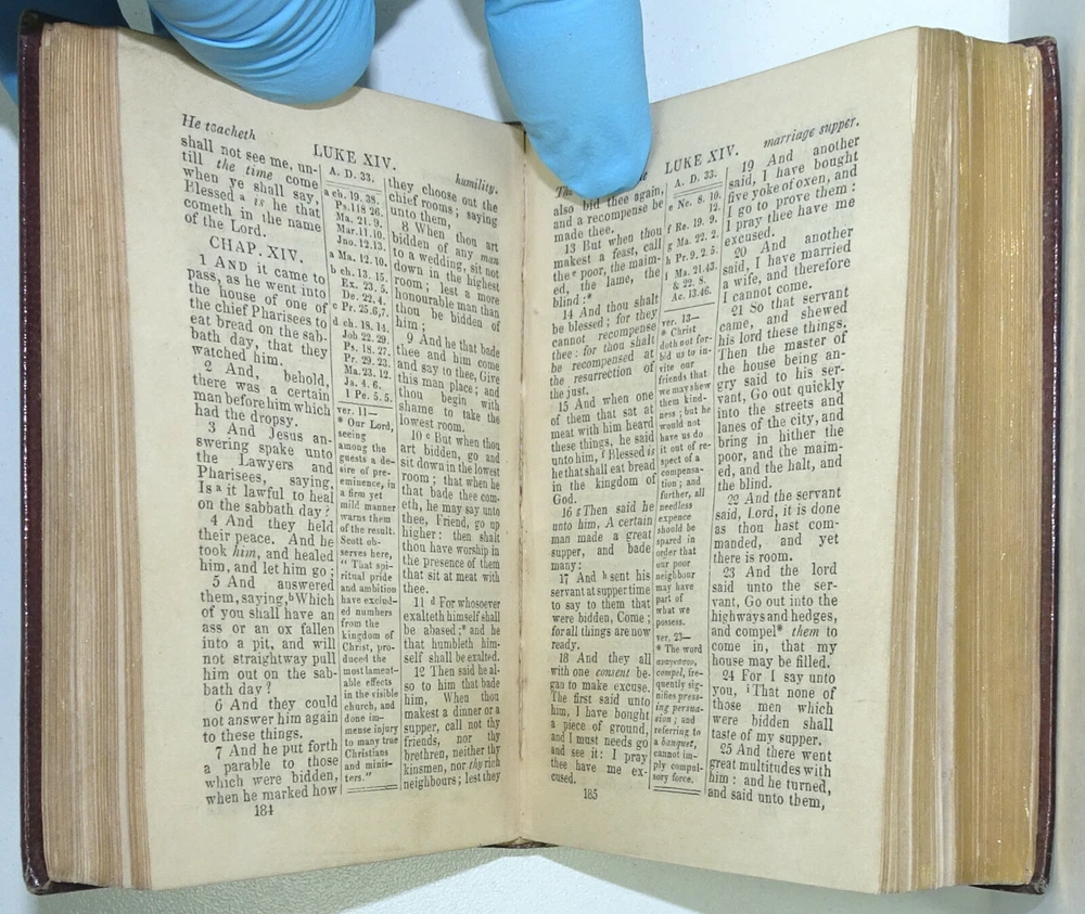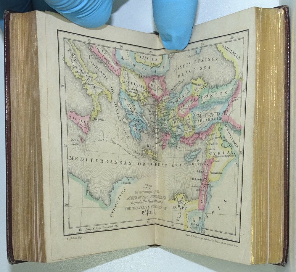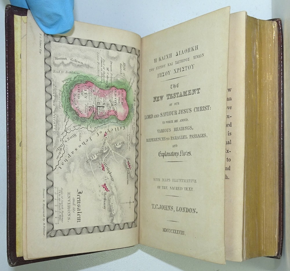 DETAILS: Title: The New Testament Of Our Lord And Saviour Jesus Christ: To Which Are Added, Various Readings, References To Parallel Passages, And Explanatory Notes. The Maps Illustrative Of The Sacred Text . Date Published: 1838 . Place Published: London . Published By: T. C. Johns. Size: Approx 4" x 2 7/8" x 7/8". CONDITION: Overall: Very good. Bound in a mid 19th Century, (probably original) full leather fine binding! Pages: Previous owners inscription to front pastedown. Otherwise very good with minimal discoloration and or soiling, (please see pictures) . Binding: Very good, still sound . Hinges: Very good, sound and flexible . Hardcovers: Very good with light wear and soiling, (please see pictures). Spine: Very good with light wear and soiling , (please see picture s) .