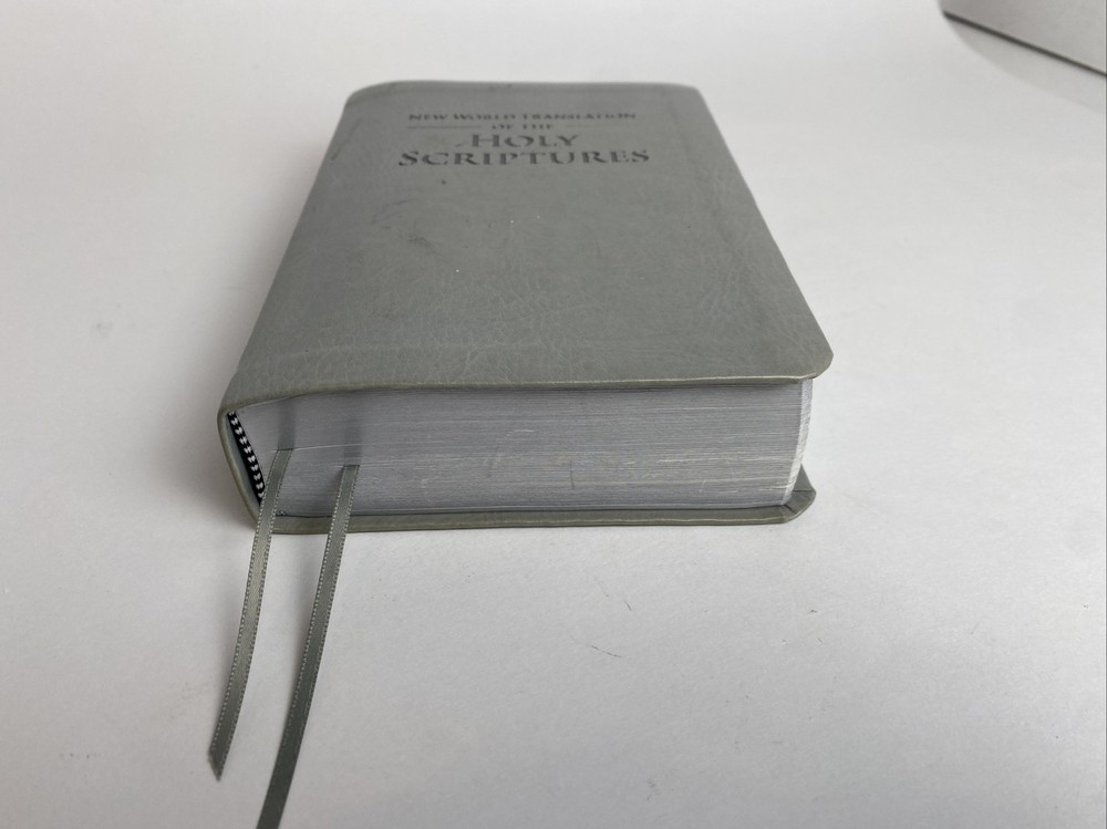 New World Translation of the Holy Scriptures Watch Tower Bible Faux Leather Grey. Lightly used with some small blemishes on front cover. Zoom in on pictures for condition