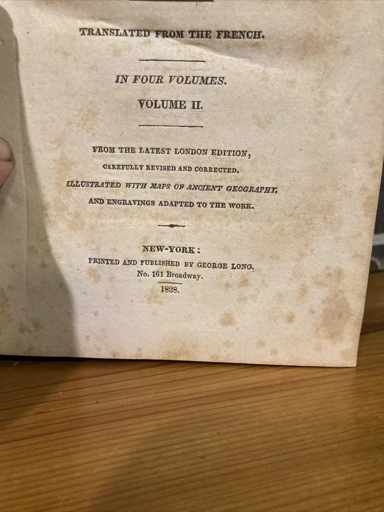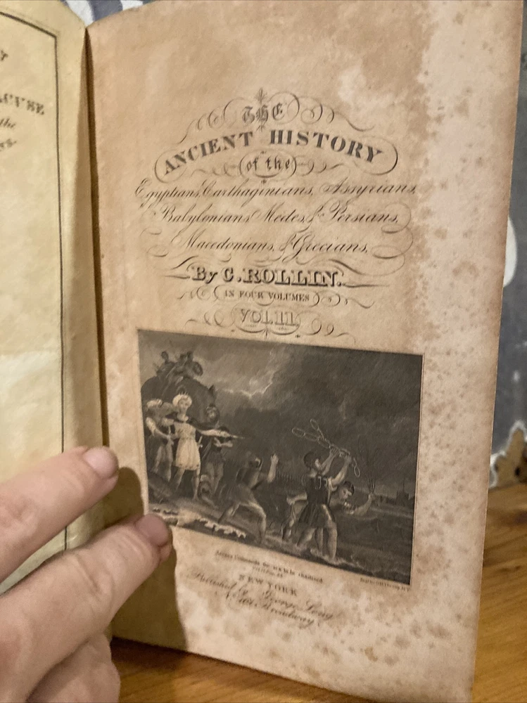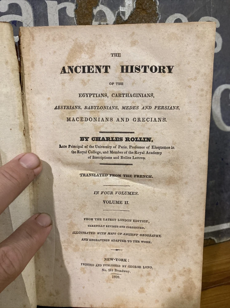 Up for sale here is a very hard to find copy of Charles Rollin's "Ancient History," published in 1828 by George Long. Volume II only, focusing primarily on the Persians and Greeks. Front hinge cracking but still holding on fine. Book is solid and easily readable. Great foldout map of Syracuse as frontis. Great set builder for an important set in any historical library. Please email with any questions, all offers happily considered!