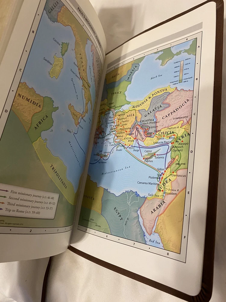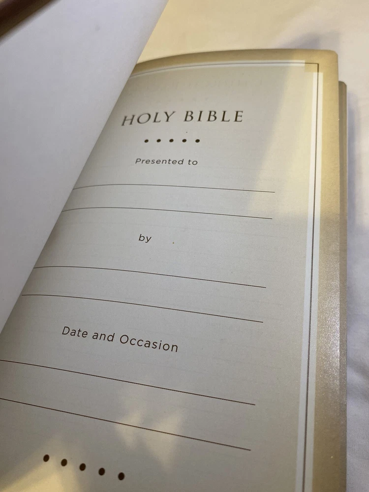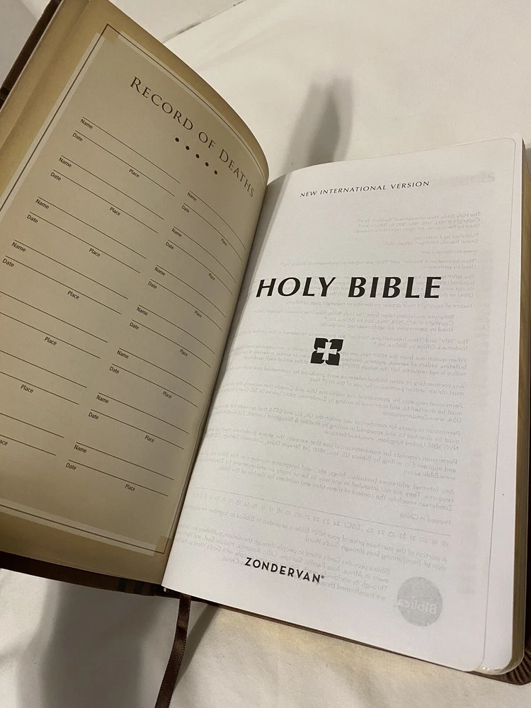 The Holy Bible, International Version book by publisher Zondervan, written in English. It is the 4th Edition published in 2011, intended for various age groups and adults. The book features brown faux leather binding, colored maps, red lettering, and family records pages. It falls under the genres of spirituality, religious & spiritual, and history, focusing on the topic of the Bible. This Bible looks unused . Pages are crisp with no writing inside. The outer cover has some minor wear on back. Nice Bible. Good condition.