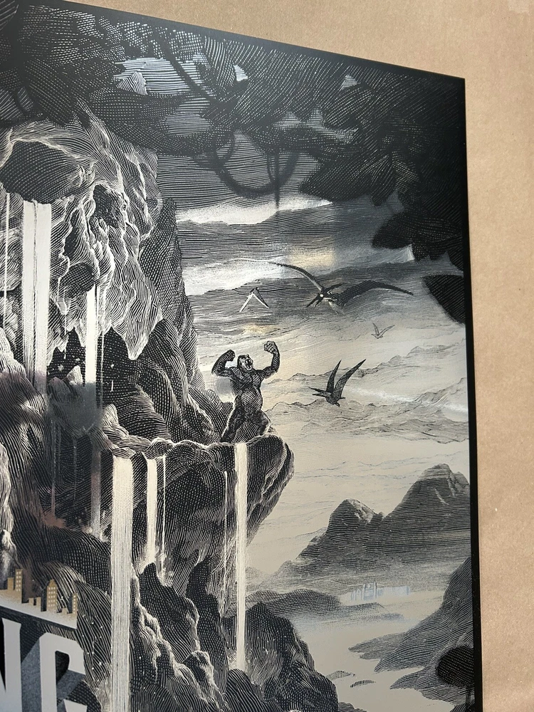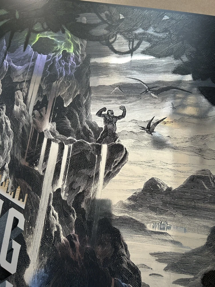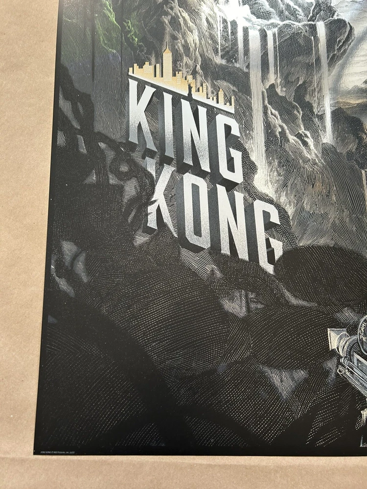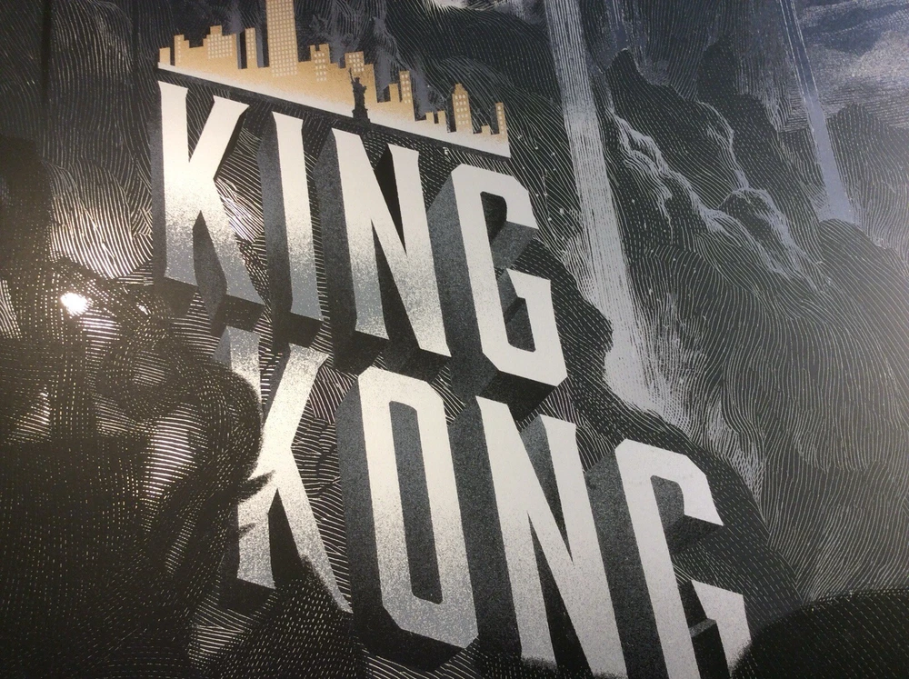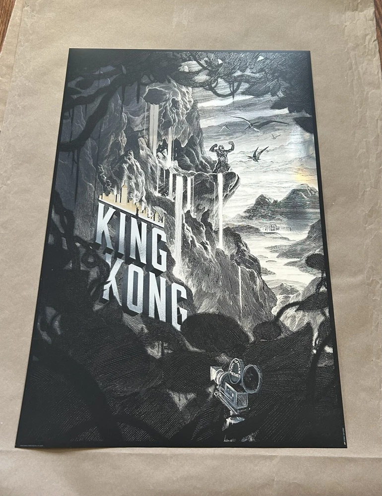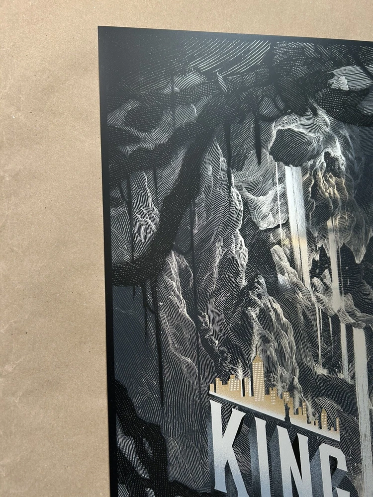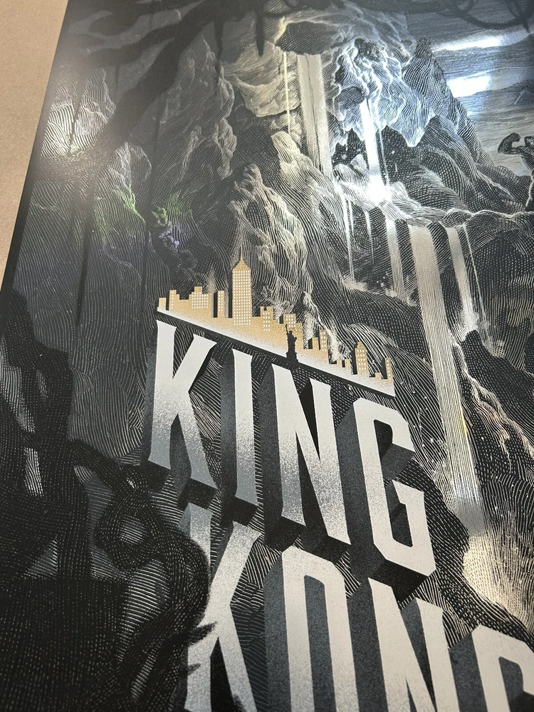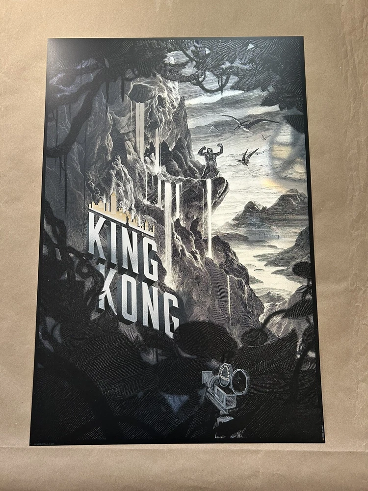 Get your hands on this stunning Nicolas Delort King Kong Foil Poster featuring the iconic monsters Godzilla and King Kong. The intricate details and vivid colors make this print a must-have for any art lover or collector. The print type is perfect for those who are looking to add a touch of elegance to their living space. Whether you're a fan of the classic monsters or just love beautiful art prints, this is the perfect addition to your collection. The poster is in excellent condition and will arrive at your doorstep in no time. Don't miss out on the opportunity to own a piece of art history. Measures 20 x 30 Numbered edition of 280 Sold by Darkhallmansion 2015