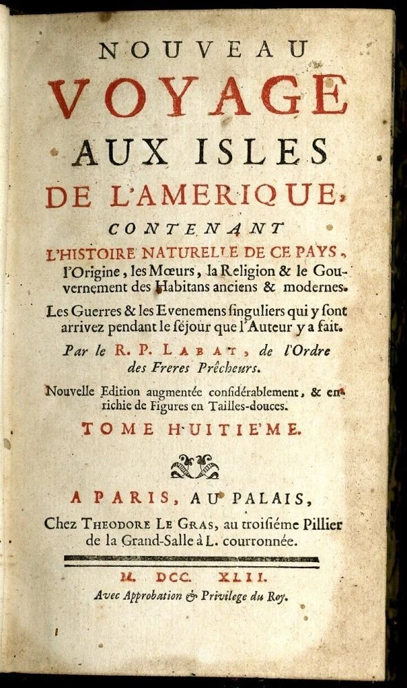 Jean-Baptiste Labat: Nouveau Voyage Aux Isles de L'Amerique Contenant L'Histoire Naturelle de ce Pays . Tome Quatrieme, Septieme, Huitieme (Books 4, 7,8) Theodore le Gras, Paris, 1742. Third Edition. Binding: Hardcover (Full Leather). Book Condition: Good Condition. Size: Octavo (8vo). Full leather, worn, spine worn and chipped, hinges cracked. Scattered foxing, browning, an an old stamp to the margin of page 3, but otherwise very clean internally. Volume 4 deals principally with the sugar cane growing and manufacturing operations on the islands. Volumes seven and eight deal principally with Martinique, Guadalupe, Barbados and Granada. Volume 7 with a number of chapters on native trees. 8 single page plates and 4 folding plates in volume 4, 533pp. . Sabin 38412 ("This edition is greatly augmented") volume 7: 2 plates, 1 folding map, ,vi, 516pp; vol 8: iv, 437, (7)pp. 10 single page plates, 4 folding plates and a map in the three volumes. Labat was a French missionary and scientist appointed to examine the sugar plantations in the French carribbean and reported back and suggested improvements. He was also an amateur naturalist and mathematician. This set puslished first as 6 volumes and then expanded to 8 with this edition, was hugely popular at the time.