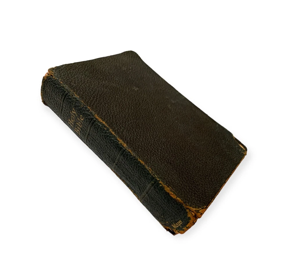 Old Holy Bible Antique with maps Leather binding and gold edged from the end of 19 century...