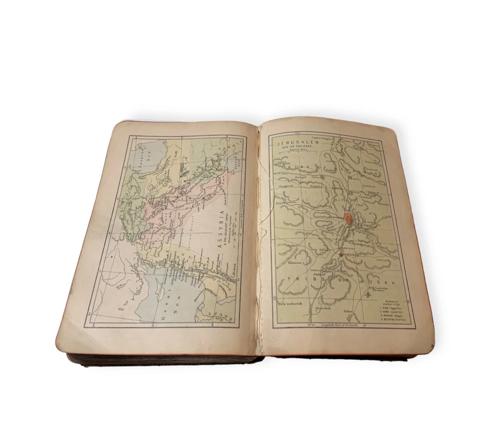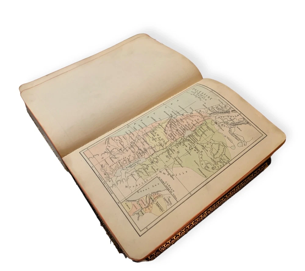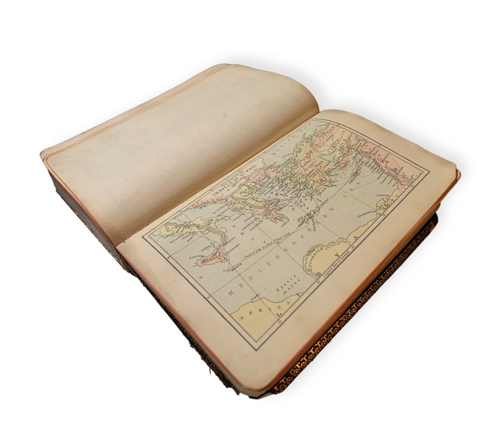 Old Holy Bible Antique with maps Leather binding and gold edged from the end of 19 century