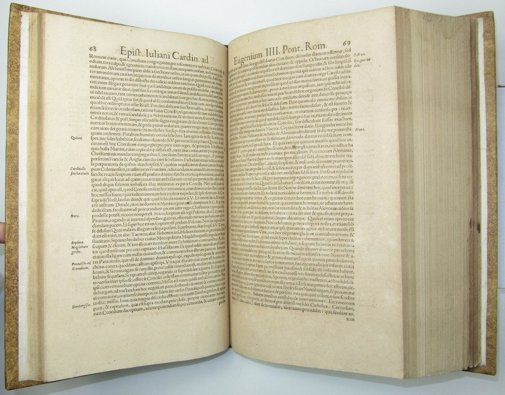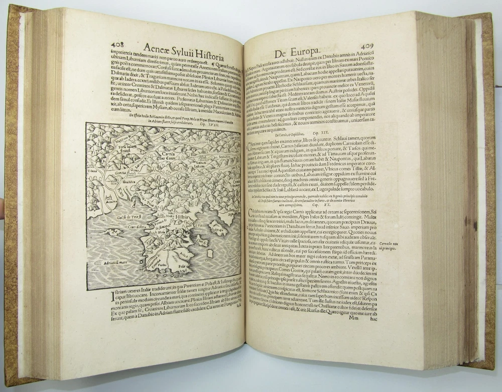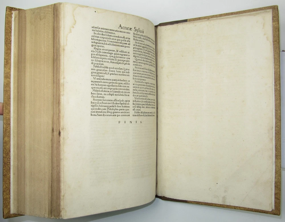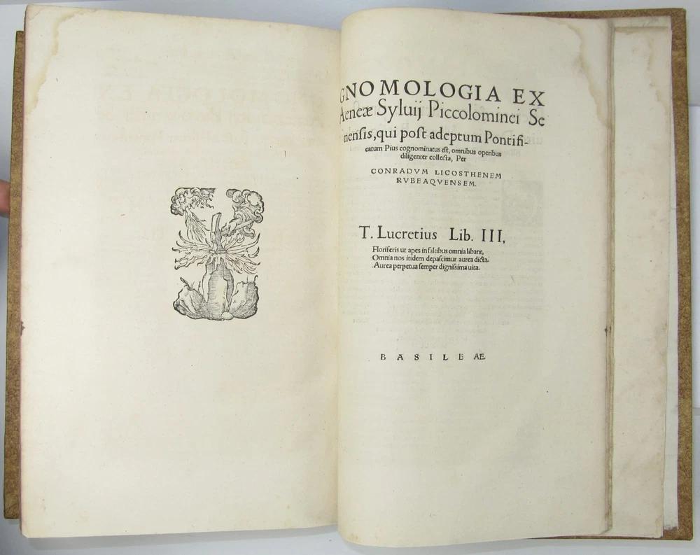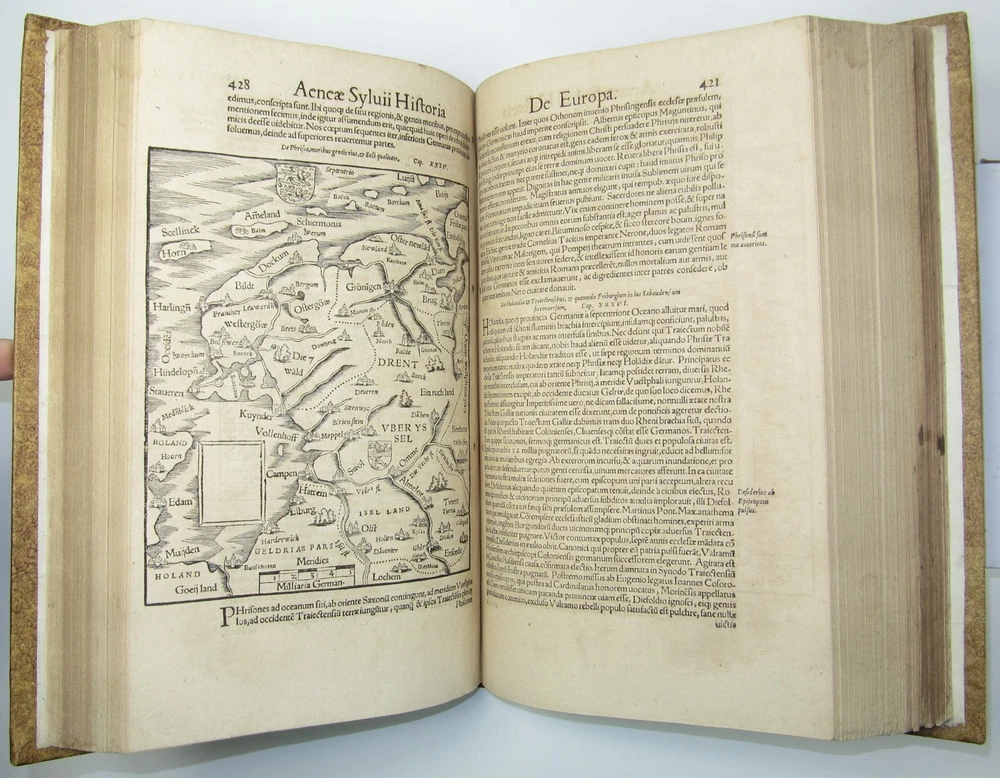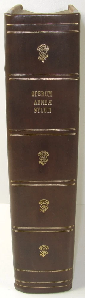 DETAILS: Title: Opera Quae Extant Omnia . Author: Enea Silvio Bartolomeo Piccolomini , (Pope Pius II, (1405-1464)). Published: 1551. Place Published: Basel, Switzerland . Published By : Henrich Petri, (1508-1579). Description: First Collected Edition, (Adams P1333). 19 woodcut maps within text. 1034 pages + colophon leaf, and the “Gnomologiae” with separate title at the end! Size: Approx 12 3/4" x 8 1/4" x 2 3/4". CONDITION: Overall: Good to very good. Rebound in a 20th century half leather binding with gilt decorated spine! Pages : Good to very good with occasional moderate discoloration . Light water staining to top fore edge corners of last 35 of so pages. Some soiling to endpapers, minimal staining, (please see pictures) Binding: Very good, still sound . Hinges: Very good, sound and flexible. Hardcover: Very good with minimal wear, (please see pictures) . Spine: Very good with minimal wear, (please see pictures) . WHY SHOULD YOU BUY FROM US? 1. Honest descriptions. 2. Efficient communication. 3. Sympathetic and patient packaging, using appropriate materials. 4. Fast order dispatch, usually within one business day. 5. A sincere commitment to 100% customer satisfaction. IF FOR ANY REASON YOU HAVE A CONCERN WITH OUR PRODUCT OR SERVICE, PLEASE CONTACT US SO WE CAN MAKE IT RIGHT! THANK YOU FOR YOUR INTEREST!