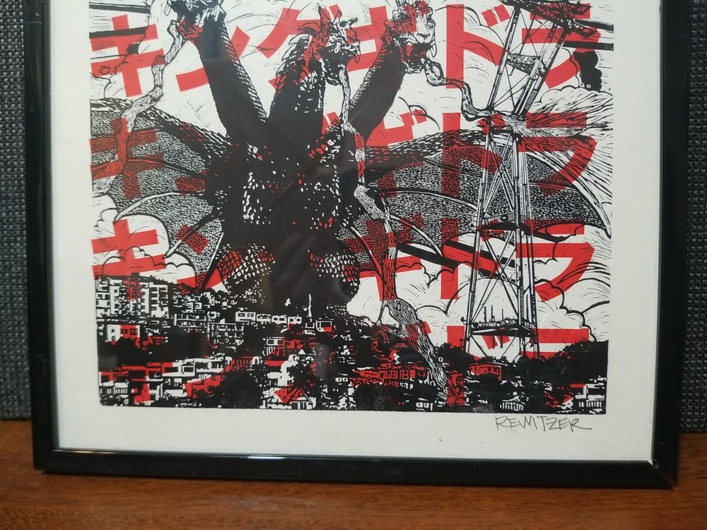 GODZILLA FANS! Original Gidorrah Linocut Giclee Print Signed by Eric Rewitzer - 3 Fish Studios Roughly 12 x 12 W L The item has always been in a frame and never removed by me. The piece came in a set of 3 prints with Rewitzer's signature. These are rare collectibles and are listed for sale on only one other collector's website that I could find. Buyers, please read: Returns not accepted. If you have poor reviews or have a new account, I reserve the right to cancel the sale. Note for research: Here is the site to the original artist to view this series of prints - https://www.arc-sf.com/3-fish-studios.html Thanks, and happy bidding to all. Note: Add and purchase other items of interest from my store to reward yourself with a discount on multiple items =) Additional Note: See if other shipping options are available to save $$ Please see/view the pics for complete details. Message me with any questions. Thanks for viewing. Happy bidding/buying! - Retail Deals Therapy =)
