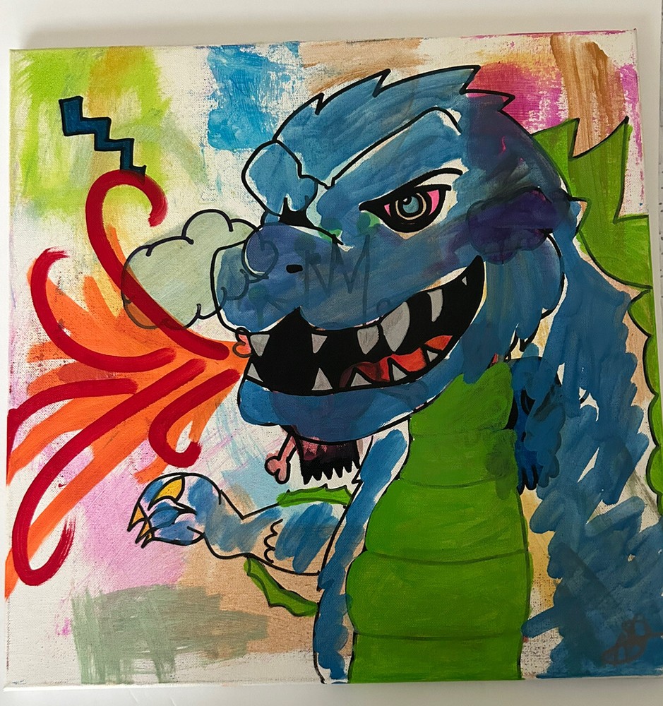 Thank you for your interest in this art piece. This is my original hand painted art work. All art work comes with a certificate of authenticity from the NST Gallery. I never create or paint the same piece twice, making each creation rare and exclusive. www.artbynst.com Title: “Fire Breather” Year: 2023 Medium: Ink, Acrylic and Varnish on Stretched Canvas Signed: Yes Certificate of Authenticity: Yes Size: 18 X 18 Inches Thank you for looking !