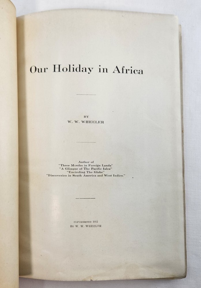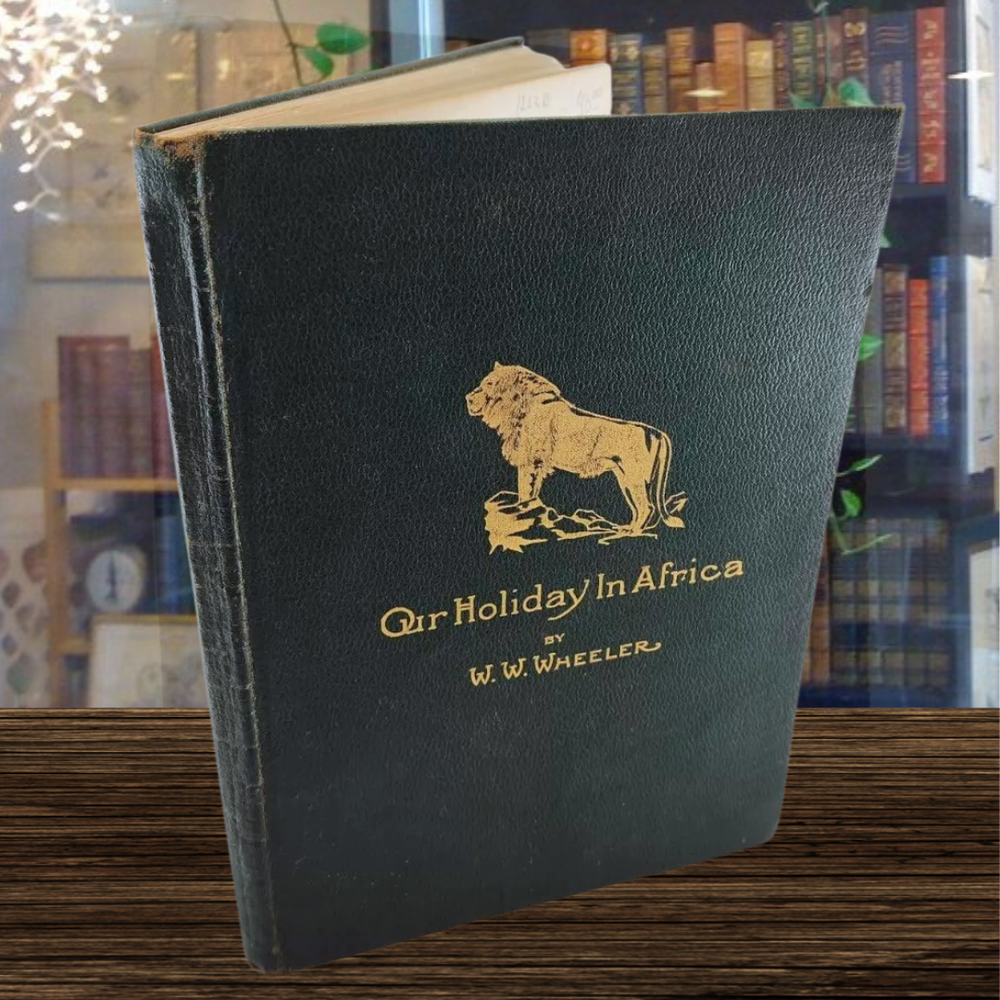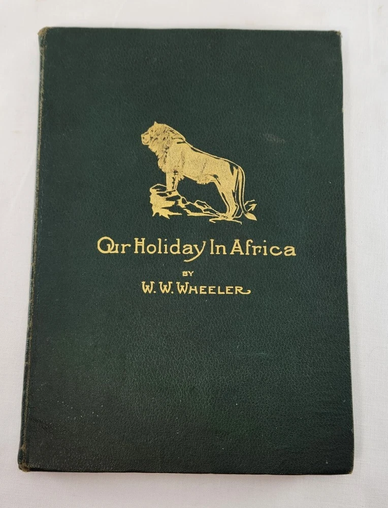 A. Parker's Books Offering antique books, vintage books, and rare books for over 43 years View our other listings: A.Parker's Books Our Holiday in Africa Wheeler, W.W. St. Joseph: Privately published, 1912. 8vo., 173 pp. Green leather with gilt lion and titles to front. Numerous b/w photographs and one color fold-out map. Wear to spine ends and scuffs to covers, gutters starting, map very good and a bit toned. PH F3