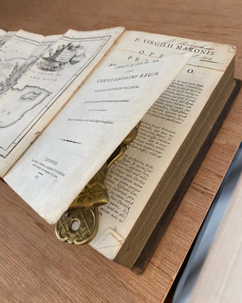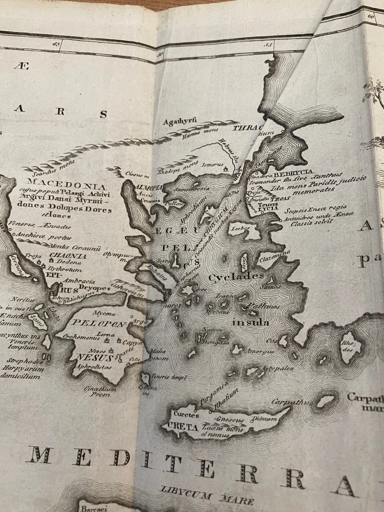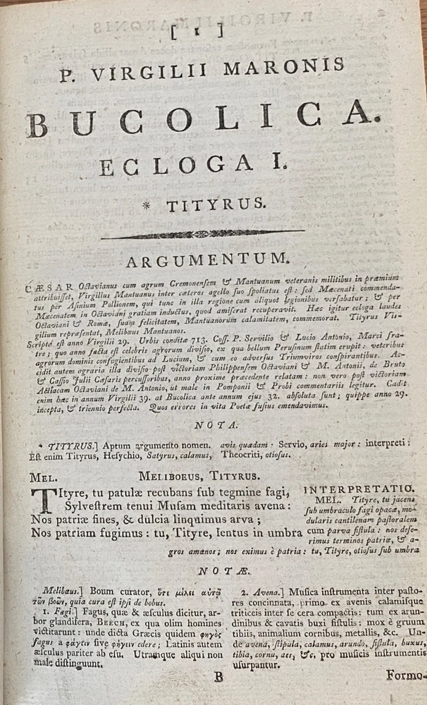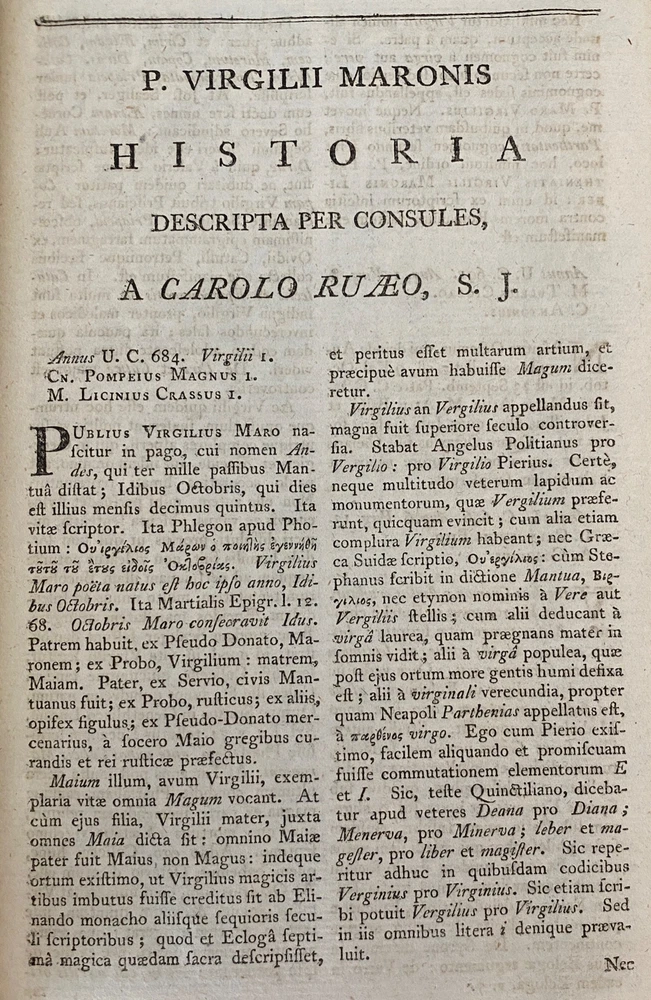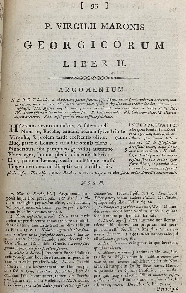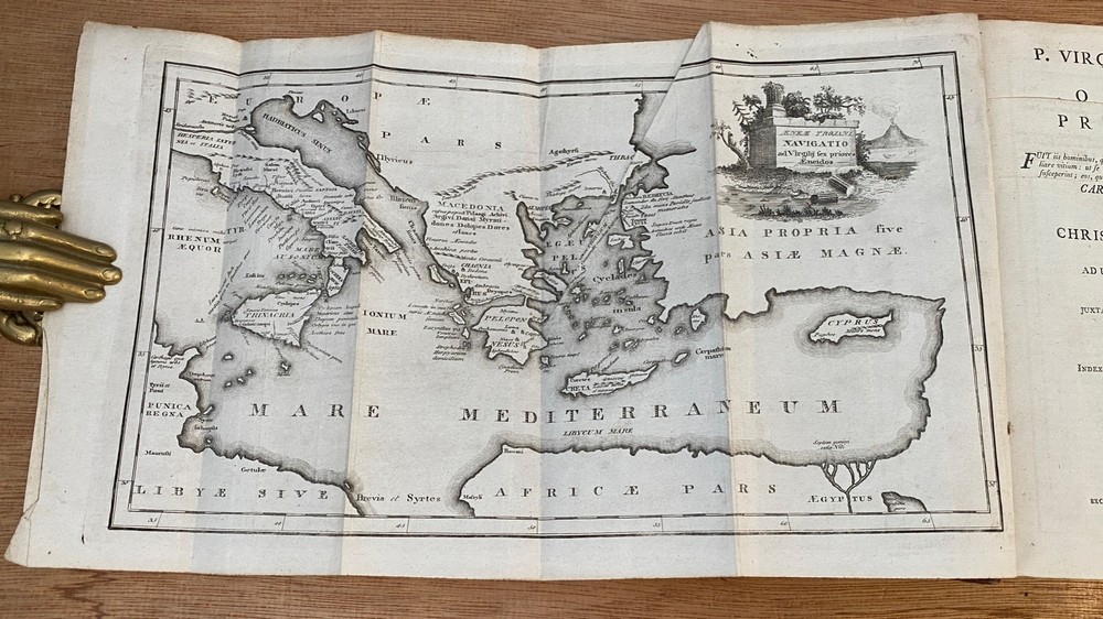 P. VIRGILII MARONIS OPERA Extensive Notes & Folding Map 1805 Charles de La Rue P. VIRGILII MARONIS OPERA Extensive Notes & Folding Map 1805 Charles de La Rue POB#57899 TITLE: P. Virgilii Maronis opera : interpretatione et notis illustravit AUTHOR: Virgil, Fr. Charles de La Rue PUBLISHER: Edinburghi: C. Stewart DATE: 1805 DESCRIPTION: 610, 222 pages CONDITION NOTES: INCOMPLETE: FRONT COVER MISSING, TITLE PAGE LOSS. Otherwise pages Near FINE without foxing, large creases, or further tears or losses. A nice reading copy BINDING: Tree calf. . Extensively footnoted, and text organized by line references. Excellent copperplate map frontispiece Listing and template services provided by inkFrog