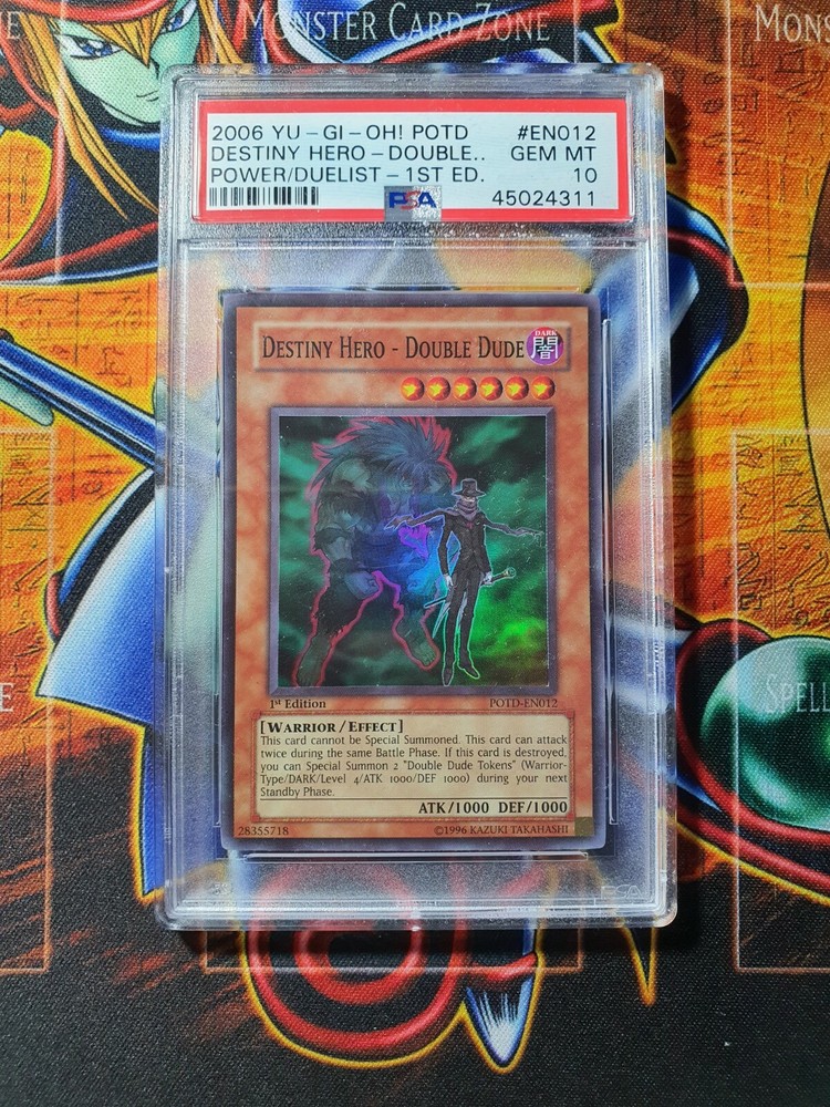 POTD-EN012 Destiny Hero Double Dude Super Rare 1st Edition YuGiOh Card PSA 10. Condition is "Used". Dispatched with Royal Mail 2nd Class Letter....
