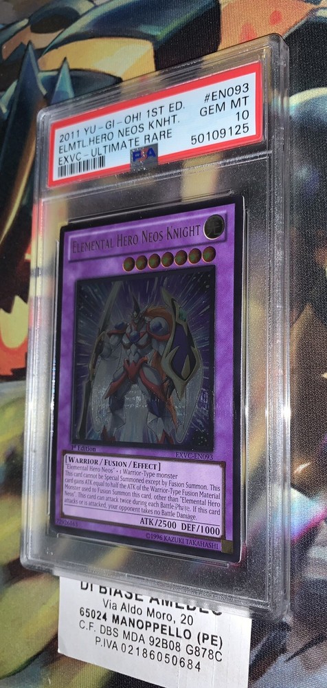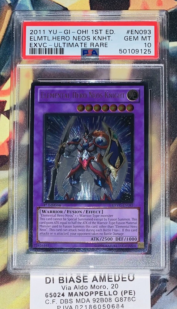 💎PSA 10 ELEMENTAL HERO NEOS KNIGHT EXVC-EN093 1st EDITION ULTIMATE RARE 2011 POPOLAZIONE AL MONDO 3! LA PLASTICA PSA PUÓ AVERE GRAFFI CHE NON INFLUISCONO SUL VALORE DELLA CARTA! LA CARTA È CERTIFICATA PSA CON VOTO 10 ED È ESATTAMENTE COME VISIBILE NELLE FOTO ! VERRÀ SPEDITA CON UN UNA SLEEVES PROTEGGI PLASTICA E NEL MODO PIÙ PROTETTO CHE ESISTE! X ULTERIORI FOTO NON ESITATE A CONTATTARMI! È ORIGINALE COME TUTTE LE CARTE CHE HO IN VENDITA! PER PIÙ ACQUISTI SI PAGA SEMPRE UN UNICA SPEDIZIONE E LA CARTA VERRÀ SPEDITA NEL MODO PIÙ PROTETTO POSSIBILE USANDO CARTONCINI E PACCO CON BOLLICINE! SONO MOLTO SERIO È SEMPRE DISPONIBILE PER INFO,FOTO O OFFERTE, NON ESITATE A CONTATTARMI IN QUALSIASI MOMENTO!