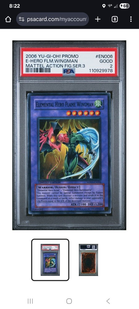 Psa 2 Flame Wingman from the mattel toys. Recently graded. Any questions please ask...