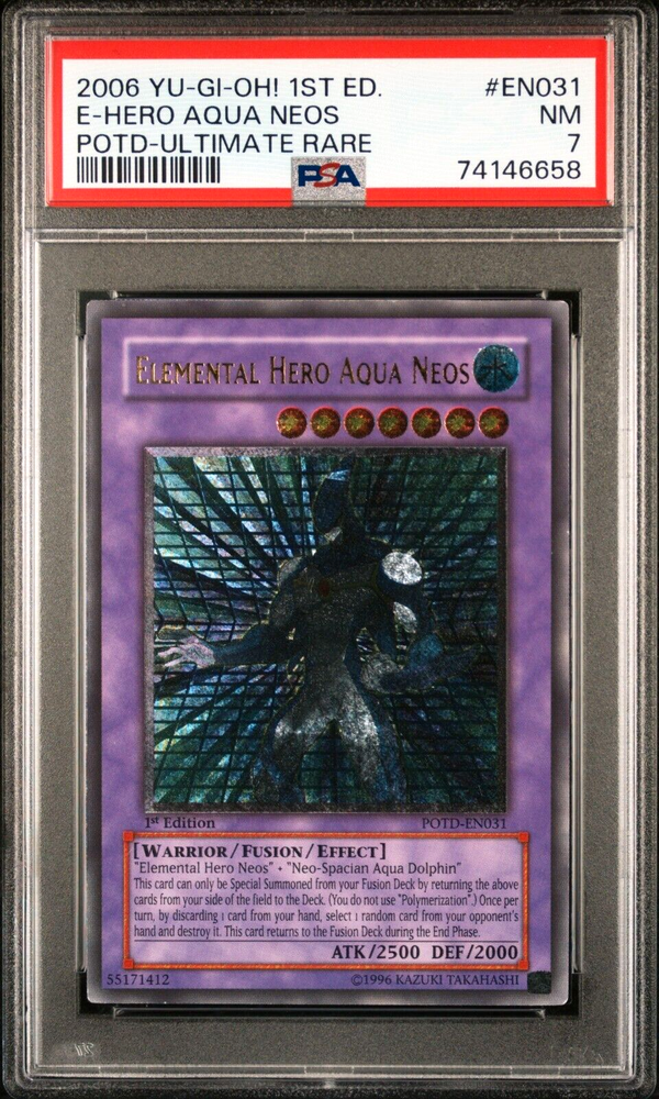 PSA 7 E-Hero Aqua Neos POTD-EN031 Ultimate Rare 1st Edition English YuGiOh European Print