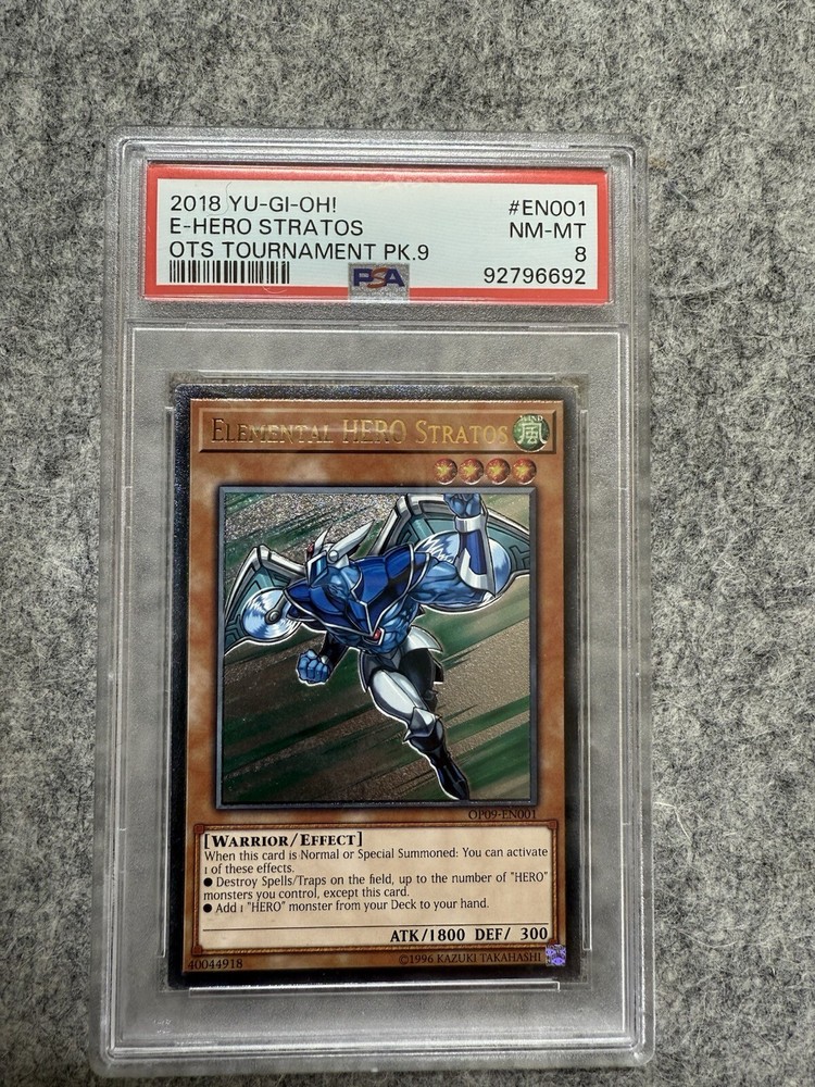 Elevate your Yu-Gi-Oh! TCG collection with the iconic Elemental Hero Stratos card, a must-have for enthusiasts and competitive players alike. This card, designated as an Ultimate Rare, boasts the distinguished OP09-EN001 designation, ensuring its status as a sought-after piece. Crafted with the quality assurance of Konami, the Elemental Hero Stratos card is not graded, presenting an opportunity for you to assess its quality or seek professional grading for potential added value. Ideal for collectors seeking to enhance their deck or preserve a piece of Yu-Gi-Oh! history.