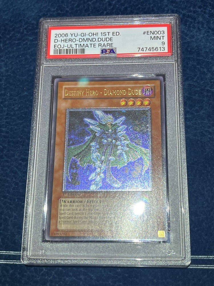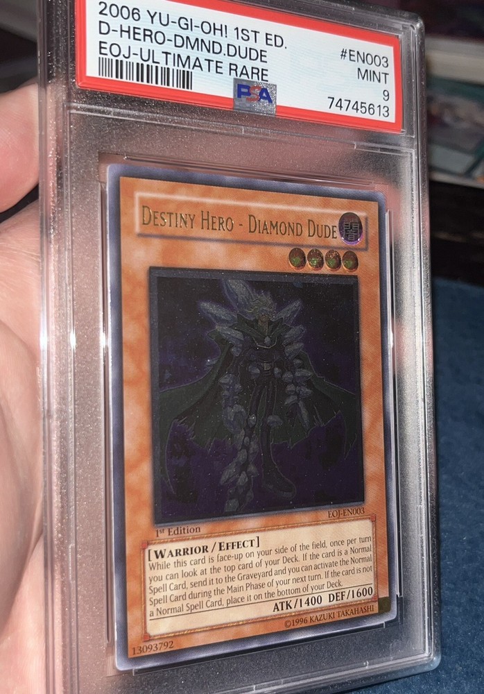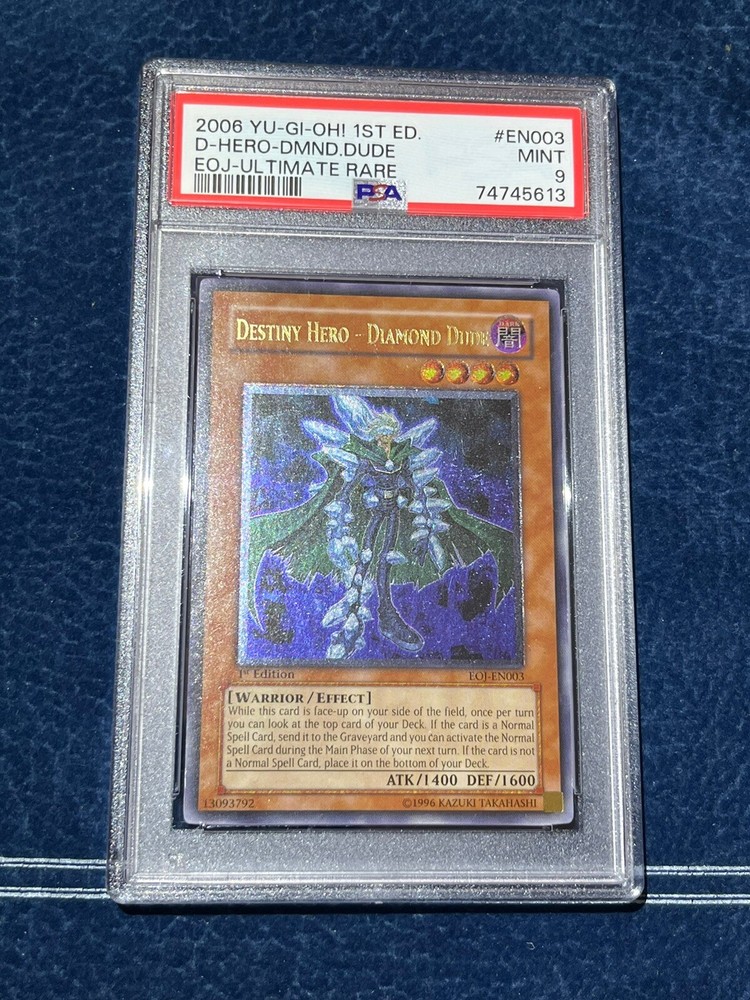 PSA 9 Destiny Hero Diamond Dude MISPRINT Foil Shift 1st Ed Ultimate EOJ Yugioh. Condition is Graded. Shipped with USPS Ground Advantage.