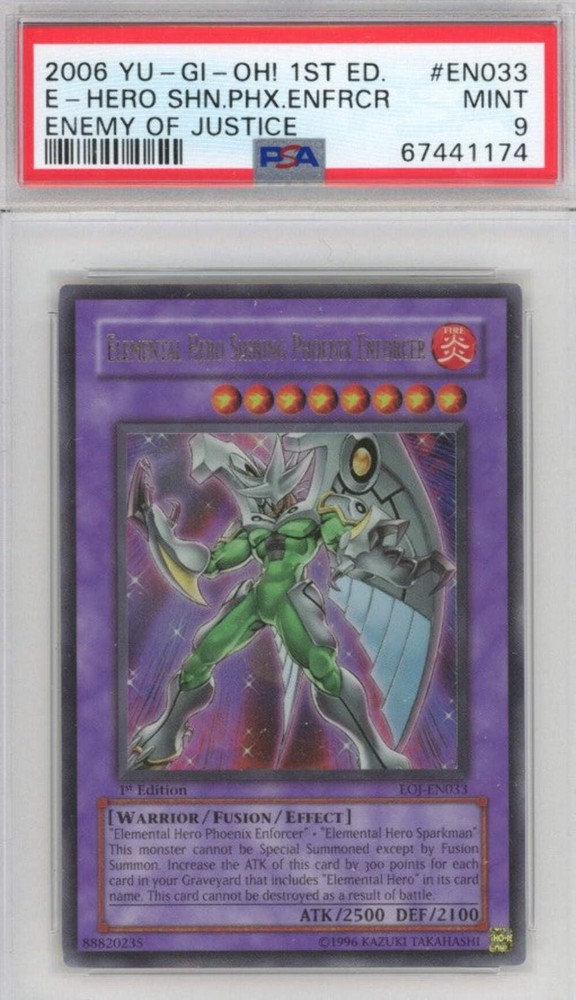 This card is a must-have for any Yu-Gi-Oh! collector! The PSA 9 grade ensures top-notch condition, and the Ultra 1st Ed. rarity makes it even more special. The artwork on Shining Phoenix Enforcer looks amazing, and the photos accurately show its crisp details. A fantastic addition to any deck or display!