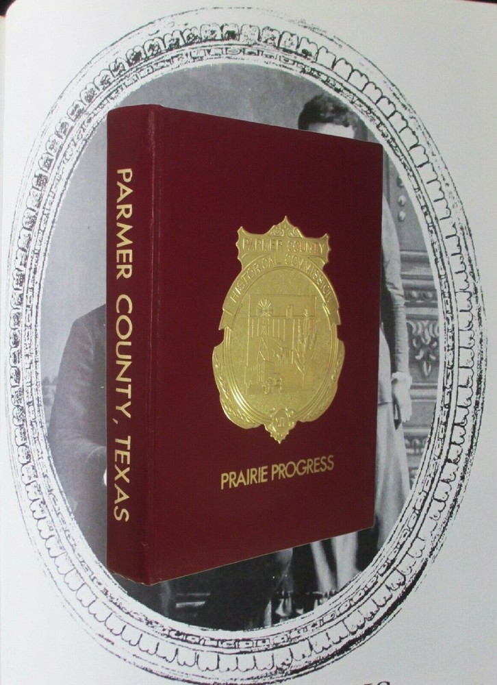 Parmer County Texas – Prairie Progress Parmer County Historical Society 1981 1 st edition 599 page leather bound Gilt graphics – illustrated endpapers – b&w photo’s _____________________________________________ Table of Contents Foreword Dedication Acknowledgment – logo Table of contents Bicentennial commemorative coin medals General history Our press Family trees Family album Tributes-memorials Clubs-organizations Business histories