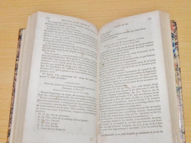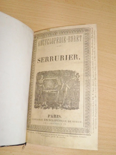 Please consult the conditions of sale at the end of the description before purchasing. PAULIN-DESORMEAUX - ALL SAINT. New Complete Locksmith's Manual or simplified treatise on this art by MM. B... and G..., locksmiths, from GR. and GA Toussaint, architect. Paris At the Encyclopedic Bookstore of Roret 1854 1 volume of text + 1 Atlas bound in 2 volumes, COMPLETE. In-12 - 9.5x15cm. Dark green half-shagreen binding , spine with 4 bands decorated with cold fillets, speckled edges. VIII, 324pp; [continuous pagination] 439pp, 16 plates. Good copy complete with its 16 folding plates. Small foxing, some tiny traces of friction, some healthy wetting and restorations on the boards, otherwise beautiful copy. ___ Bookstore L’Art et la Manner 19 Route de Pithiviers 45300 BOYNES France Member of SLAM and LILA ( National Union of Ancient and Modern Bookstores / International League of Old Booksellers) ILAB (International League of Antiquarian Booksellers) English spoken Please don't hesitate to contact us if you have any inquiry The greatest care is taken in the description of the works, however, unintentional errors may be made. Do not hesitate to inform us, including after receipt of your purchase. Regarding shipping: The choice is yours! So that you can benefit from the best services and the most advantageous quality/price ratio, the bookstore offers you: Hand delivery by appointment, in Boynes, near Pithiviers, or in Paris on Saturday mornings or during old book fairs. Sending by the Post Office : by letter for folds less than 3 cm thick (packaging included) or by colissimo. Deposit in Relay Point . The bookstore practices group shipments . If you make multiple purchases in our store, u A new claim for payment with adjusted postage costs will be sent to you within a maximum period of 24 hours . THE insurance is optional (option not available for Relay Point shipments). For shipments to Overseas , please contact us beforehand to find out the exact amount of postal costs. Although packaging costs are offered, packages are reinforced and prepared with great care. The Librairie l'Art et la Manière is always on the lookout for rare and old works, to purchase individually or in batches. We travel primarily in Loiret (45), Paris (75) and the south of Ile-de-France (91, 77, 78, 92, 94) as well as in Yonne (89) and Eure-et-Loir (28). If you would like to sell some, do not hesitate to contact us. Just type “Librairie l’Art et la Manière” into your favorite search engine! PAULIN-DESORMEAUX - ALL SAINT. New Complete Locksmith's Manual or simplified treatise on this art by MM. B... and G..., locksmiths, from GR. and GA Toussaint, architect. Small foxing, some tiny traces of friction, some healthy wetting and restorations on the boards, otherwise beautiful copy. The bookstore practices group shipments. If you make multiple purchases in our store, uA new claim for payment with adjusted postage costs will be sent to youwithin a maximum period of 24 hours. The Librairie l'Art et la Manière is always on the lookout for rare and old works, to purchase individually or in batches. We travel primarily in Loiret (45), Paris (75) and the south of Ile-de-France (91, 77, 78, 92, 94) as well as in Yonne (89) and Eure-et-Loir (28). If you would like to sell some,