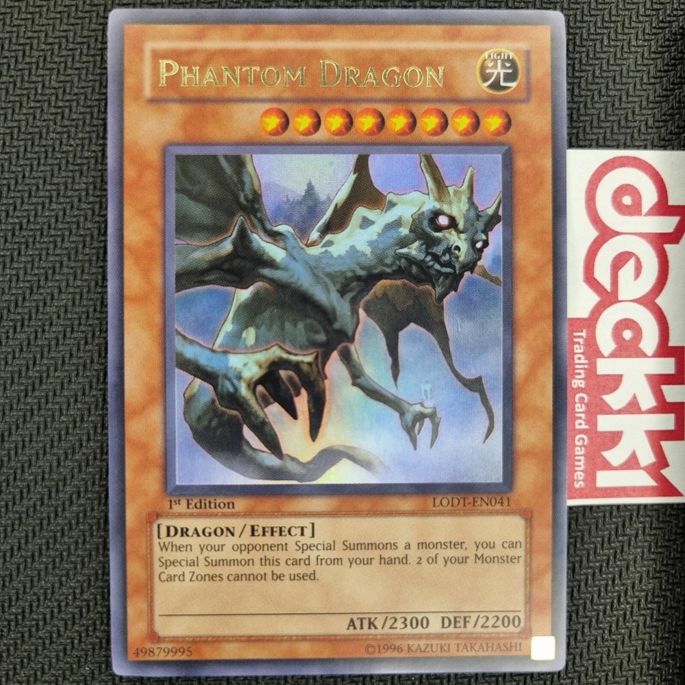 Phantom Darkness & Light of Destruction Card Selection Choose from Unlimited (UNL) and 1st Edition (1ST) cards from the drop-down list. *These cards are original print with '1996' copyright date and NOT the 2024 reprint. NM/M Condition | 2008 | Multibuy Discount Shipped double sleeved inside a cardboard-backed envelope. Grading Scale (M) : Mint: New Condition, with virtually no damages. We very rarely apply this grading scale. (NM/M) : Newer Near Mint Condition, may have feint scratches/marks and factory lines. (NM) : Lightly used Near Mint condition, with light scratches and minor edge and corner marks. (EX) : Excellent Condition, generally clean, with surface scratching, possible minor dings and edge wear. (LP) : Lightly Played Condition, clearly used and shows edge whitening and scratching. (P) : Played Condition, heavily scratched, with front and back edge whitening, corner dings and/or creases/bends. (HP) : Heavy Played Condition, shows significant edge wear, damaged corners, and possibly heavy creasing/bends. (D) : Damaged Condition, heavily worn with weakened structural integrity and possible water damage or stains. Please note: Whilst we take great care to grade cards this is only a guideline, as grading is subjective, and we always provide a generous number photographs to help you decide the condition for yourself before purchase. Deckki-TCG Established in 2010, Deck ki is a supplier of YuGiOh! and Pokemon Trading Cards, and Trading Card Accessories. Trusted seller with over 5000 reviews, selling collectibles for over 10 years, buy with confidence. Based in the United Kingdom and ships worldwide. Postage FREE Delivery in the UK. Same-day dispatch aim. Worldwide shipping available. Returns 30 day returns for faulty/incorrect orders. Returns only accepted in original condition.