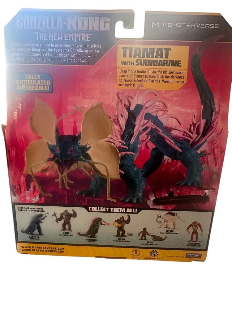 The Playmates Godzilla X Kong Monsterverse TIAMAT action figure from 2024 features a Submarine Action, adding an interactive element to the toy. With a theme inspired by Godzilla, this toy is part of the Monsters category in the world of robots, monsters, and space toys. Manufactured in China by Playmates, this figure brings the iconic characters of Godzilla and Kong to life in a dynamic and engaging way for fans of the Monsterverse franchise.