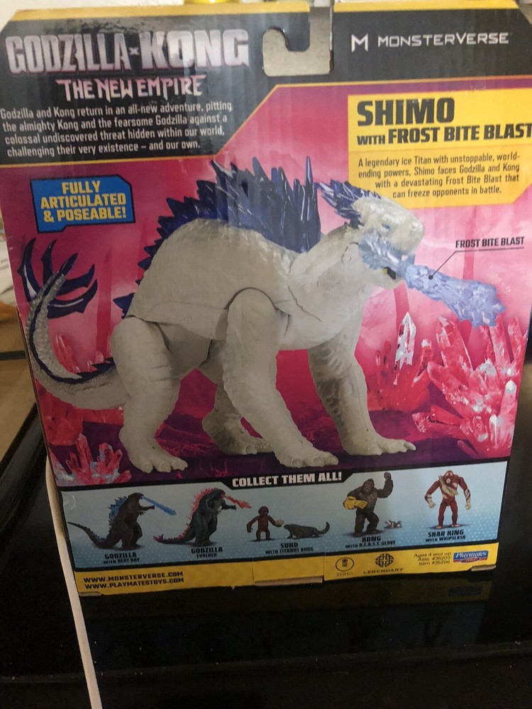 This Playmates Godzilla x Kong The New Empire SHIMO action figure is a must-have for any fan of the Monsterverse. The fully articulated and poseable figure stands at 6 inches tall and features purple crystalline spines, blue frost bite blast, and a removable tail. The packaging is themed after the new 2024 movie and the figure itself is an original, licensed reproduction. Perfect for children ages 4 and up, this action figure is made of high-quality plastic and depicts the Ice Titan animal species. It is an ideal addition to any toy collection, especially for those who love TV, movie, and video game themes. Purchase now to add this iconic character to your collection.