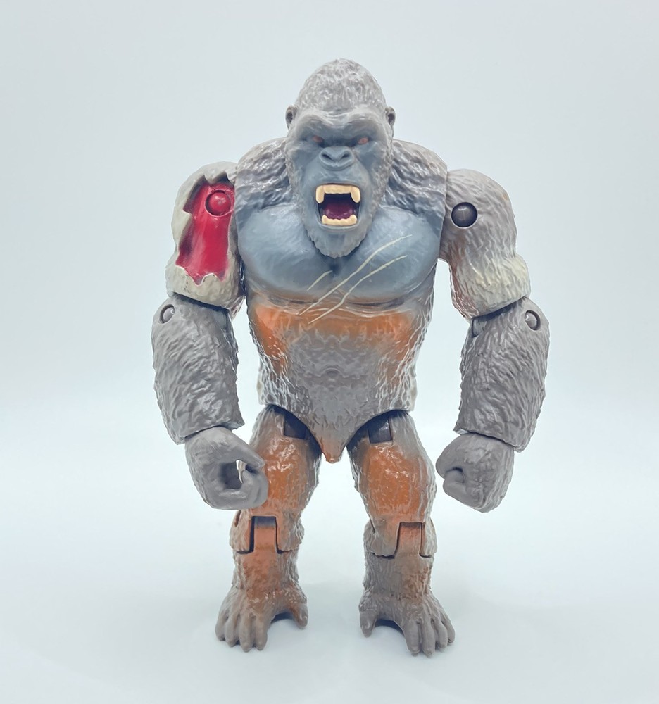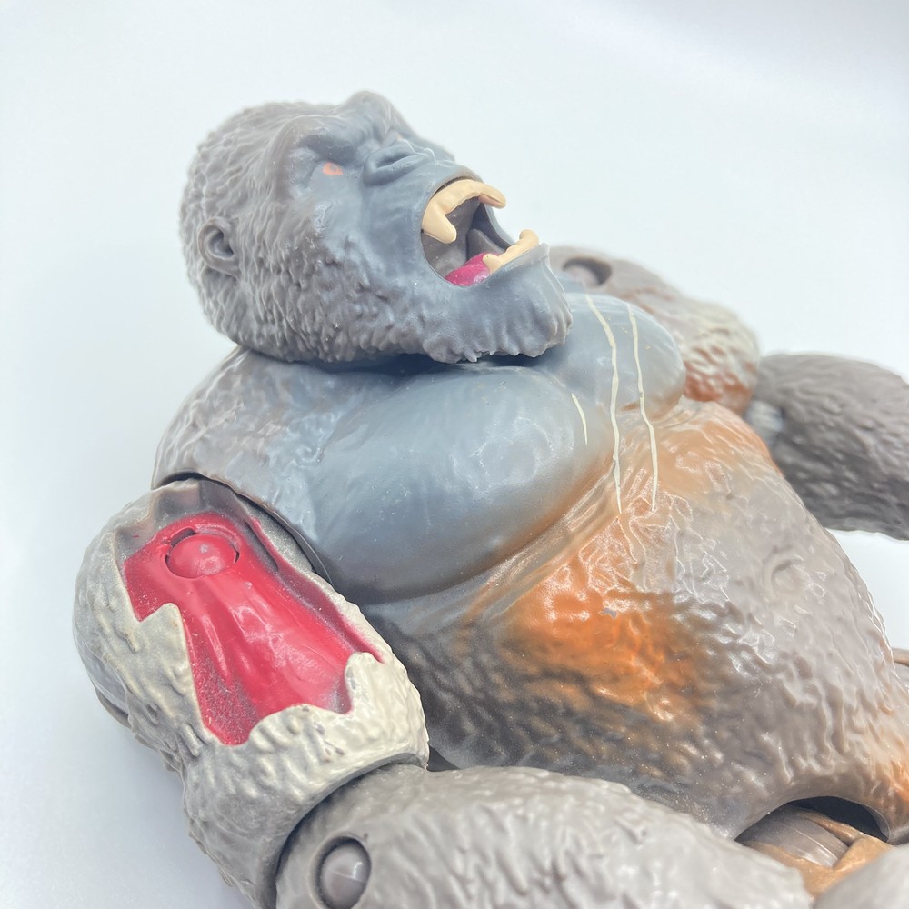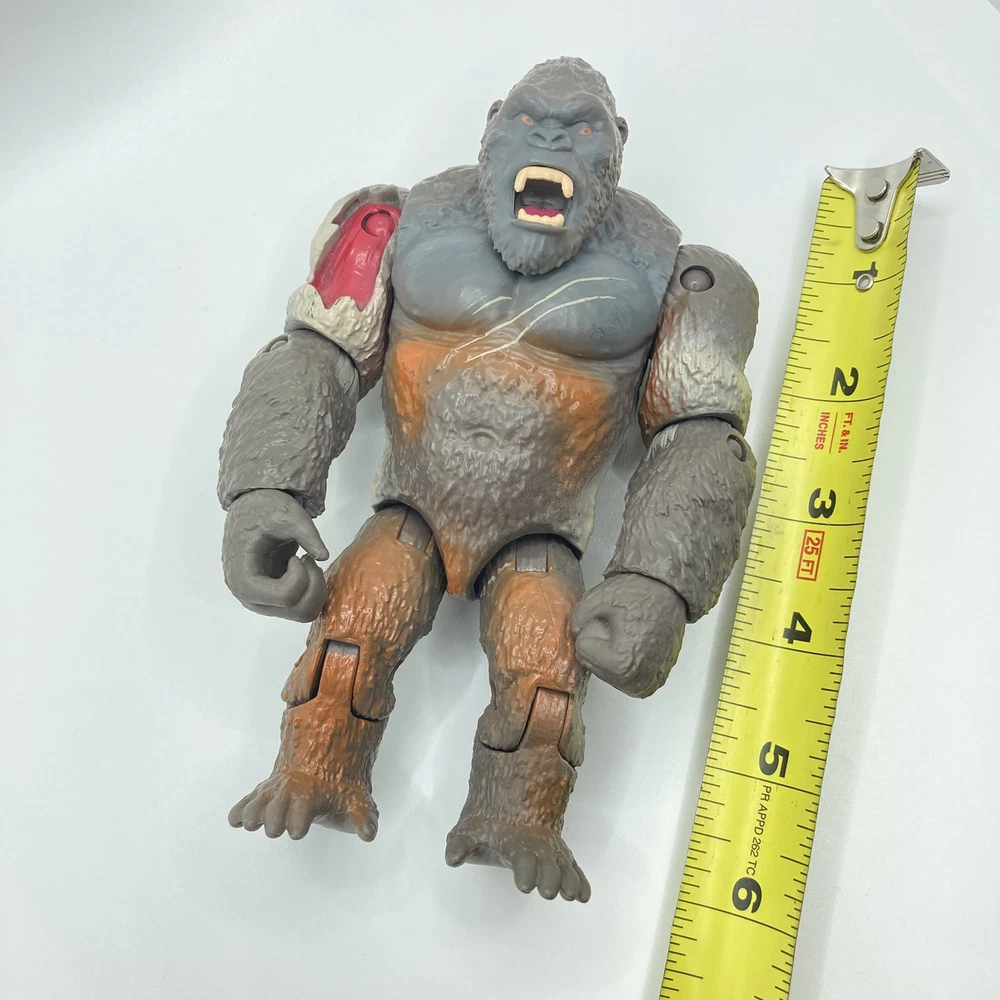 This is a Playmates Toys 6" King Kong action figure from the movie "Godzilla vs. Kong." The figure features battle damage, is made of plastic, and was manufactured in 2020. It is part of the King Kong franchise and is an original licensed reproduction. The item is themed around TV, movies, and video games, specifically the Godzilla vs. Kong movie. It was made in China. Missing the pice of plastic that covers the wound on his right arm ( just cosmetic) does not affect the movement on the action figure. Message me with any question. Look at my other items. Thank you.