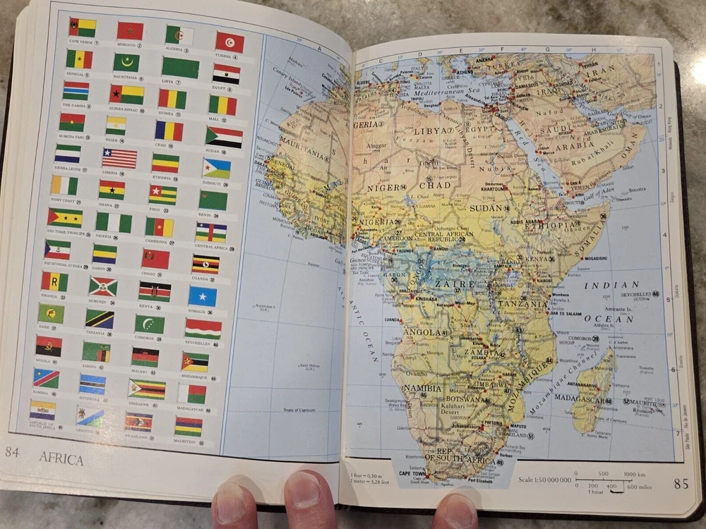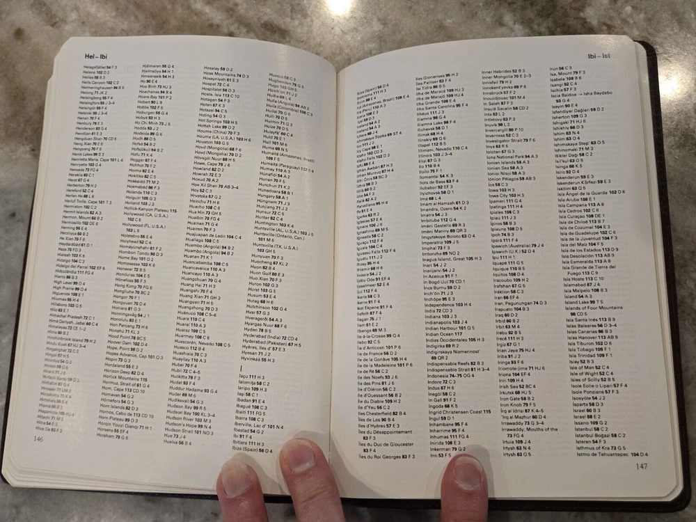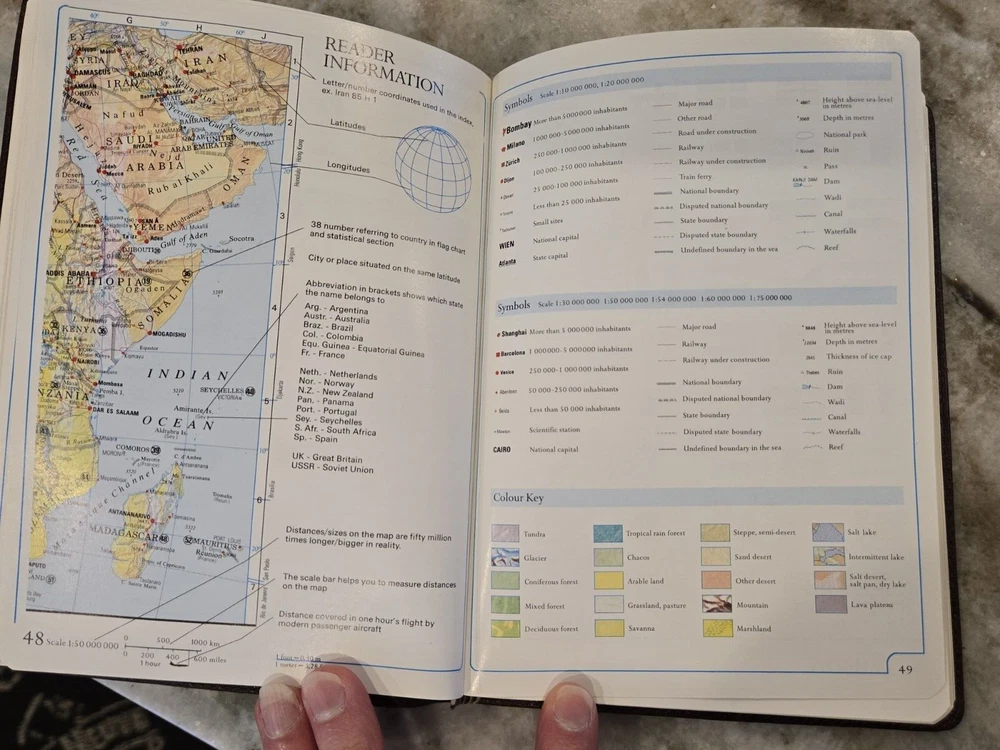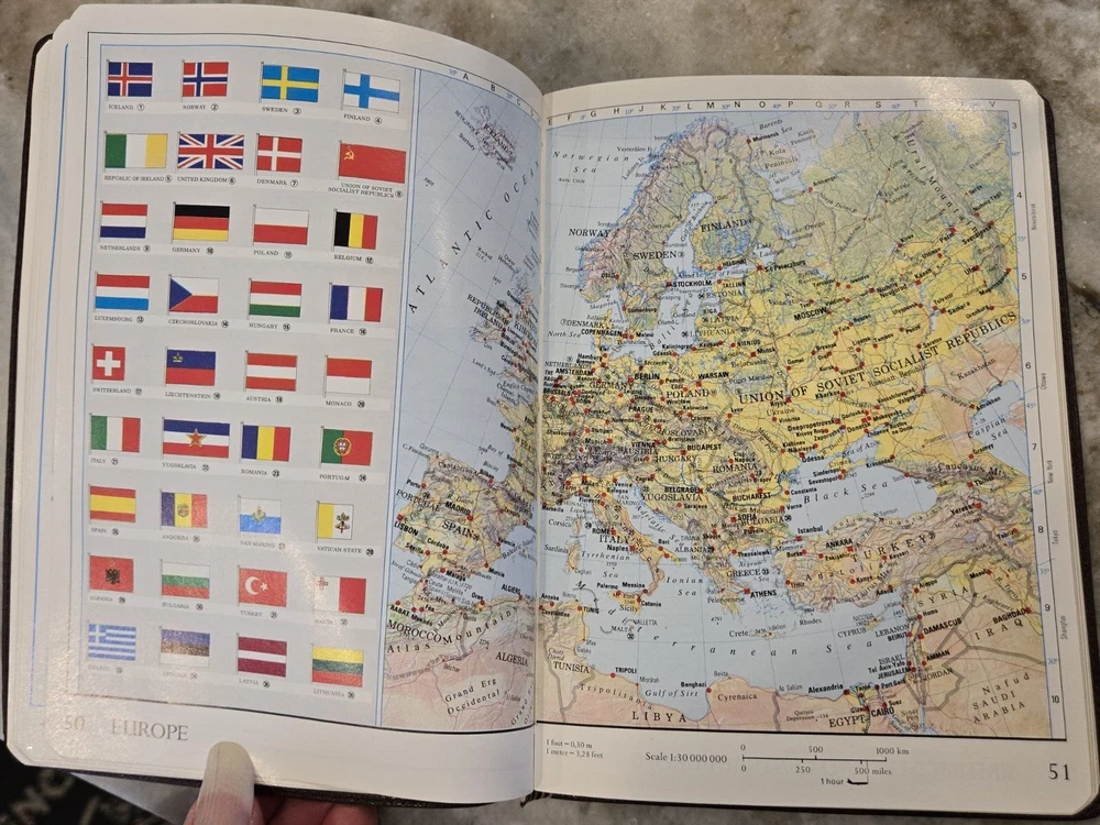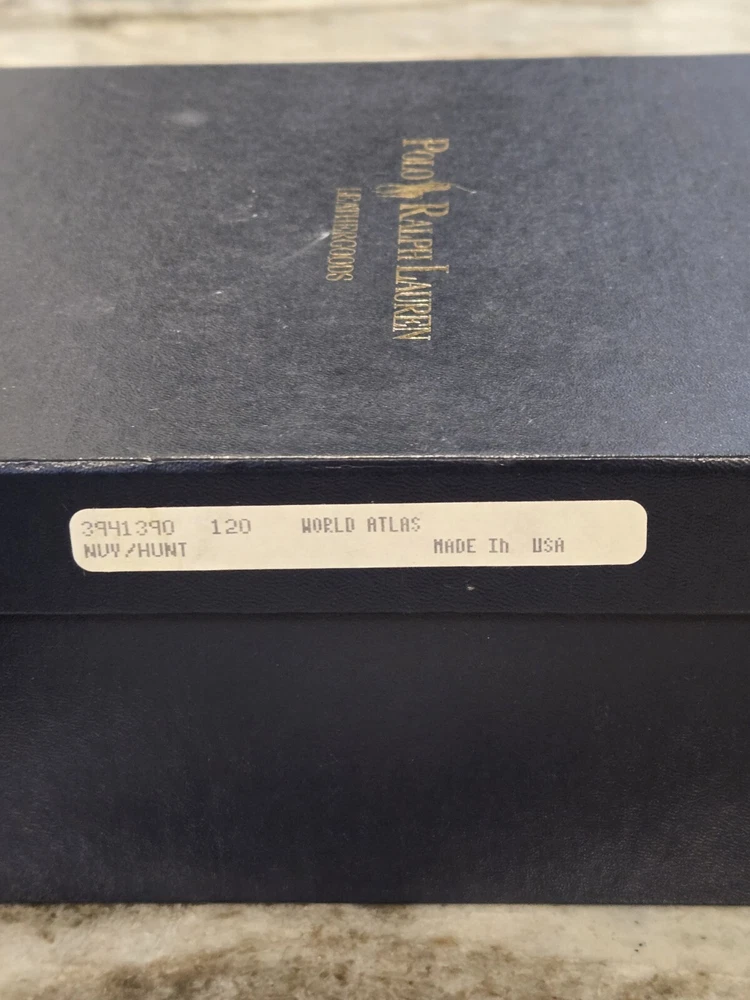 Vintage Polo Ralph Lauren Leather World Atlas navy/hunt Printed in 1991 - see photo Smoke-free home, original box. In like new condition. The photos show a variety of what is inside the book, it is 18...