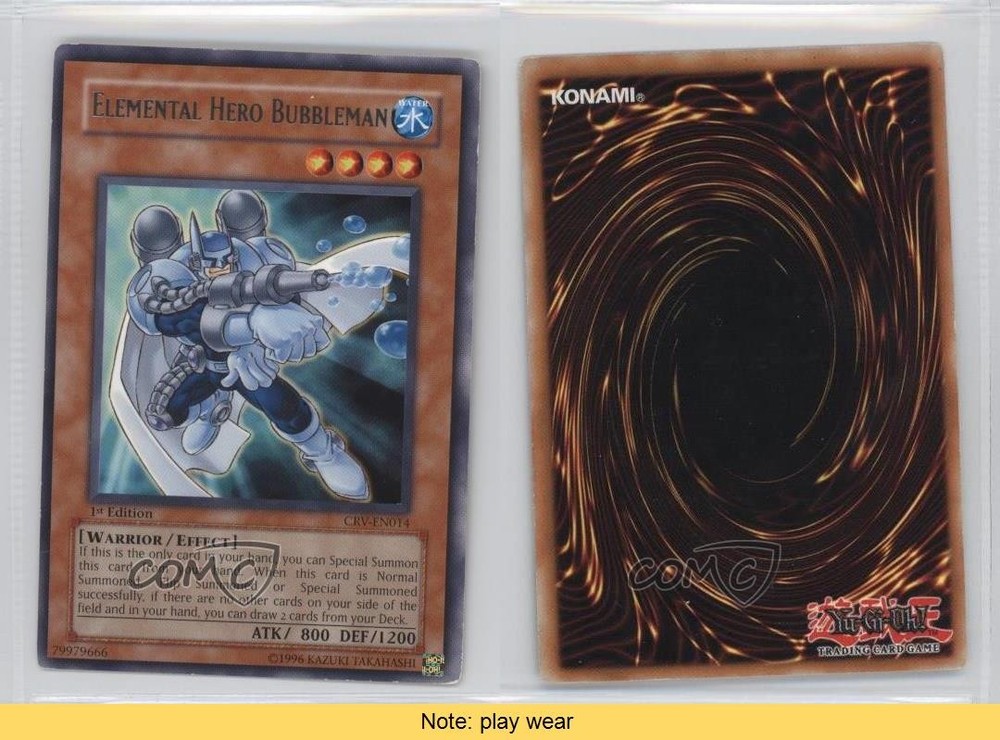 2005 Yu-Gi-Oh! - Cybernetic Revolution - [Base] - 1st Edition #CRV-EN014 R - Elemental HERO Bubbleman COMC Item: 37222909 CONDITION NOTE: play wear - YuGiOh Card - Featuring Elemental HERO Bubbleman Search for more: 2005 Yu-Gi-Oh! - Cybernetic Revolution Search for more: 2005 Yu-Gi-Oh! - Cybernetic Revolution - [Base] - 1st Edition View all of our Listings Auctions Buy It Now About Us Located in the beautiful Pacific Northwest, COMC (Check Out My Cards) is the world's largest consignment service for trading card singles. More than 10,000 people have used our consignment service to list over 50 million trading cards. Find out how we can help you consign your items on eBay by contacting us through eBay messaging. COMC -- "The Safe & Easy Way to Buy & Sell" Raw Condition for Modern Cards Unless otherwise noted, raw modern cards are listed in Near Mint-Mint condition or better. A NM-MT card appears to be Mint at first glance, but upon closer inspection, may exhibit some of the following: minor print defects (e.g. roller marks, print line, dimple), minor scratches, slight edge wear, and slight corner wear. Centering is clearly visible in the images provided and does not factor into our condition assessment. Raw Condition for Vintage Cards Unless otherwise noted, raw vintage cards are listed in Excellent condition or better. An EX card may exhibit some of the following: minor rounding of corners, surface wear, print defects, light scratches, and slight edge wear/chipping. Centering is clearly visible in the images provided and does not factor into our condition assessment. Domestic Shipping Combined shipping for multiple items is available. To receive combined shipping, please ensure all desired items are in your eBay shopping cart before proceeding to checkout. eBay limits orders to 40 items per order. We automatically combine multiple orders placed on the same day. If you place multiple orders on the same day, please contact us to request a refund of applicable shipping costs. Signature confirmation may be required on invoices over $400. All cards are protected and shipped securely. International Shipping COMC offers eBay's International Shipping (EIS) for international orders under $2,500* (see country exceptions below). All duties and import fees are paid at checkout; in the rare event that there are additional import fees upon delivery, these are borne by the buyer. EIS packages route through a shipping hub in Erlanger, KY before shipping to their final destination. Please note that EIS does not allow for combined shipments. The shipping rates are determined by eBay and cannot be adjusted. *Maximum sale price exceptions: Colombia, Kuwait ($2,000); Taiwan ($1,539); Chile, Costa Rica, Guatemala, Honduras, Trinidad and Tobago ($1,000); Antigua and Barbuda, Aruba, Belize, Dominica, Grenada, Philippines, Saint Kitts and Nevis, Saint Lucia, Montserrat, Turks and Caicos Islands ($500); Dominican Republic, El Salvador ($200). Please request a shipping quote through eBay messaging for orders that exceed the maximum sale price supported by eBay's International Shipping. You will be responsible for all duties and import fees for international orders shipped outside the EIS. All cards are protected and shipped securely. Payment COMC does not accept offers on our cards through our eBay storefront. COMC utilizes eBay’s managed payments system. If you are experiencing difficulties making a payment, please contact eBay for assistance. Return Policy Returns are only accepted on the rare occasion the item is not as described. If you are making a return, please initiate the return process through eBay so a mailing label can be provided for you. Prior to listing, our expert team carefully assessed this item to represent it accurately. Please review the description and high-definition images prior to purchasing to ensure this item meets your satisfaction. We welcome you to contact us if you have further questions about this item. Trust and Integrity COMC carefully assesses each item consigned to us to prevent fraudulent items from entering the marketplace. If you believe an item offered on COMC may be fraudulent, please contact us with details so we can investigate the issue. Items we determine are outside our supported items policy may be removed. Last Modified: 6/2/2025 6:34:25 PM PDT