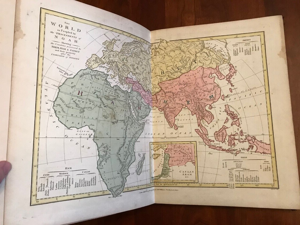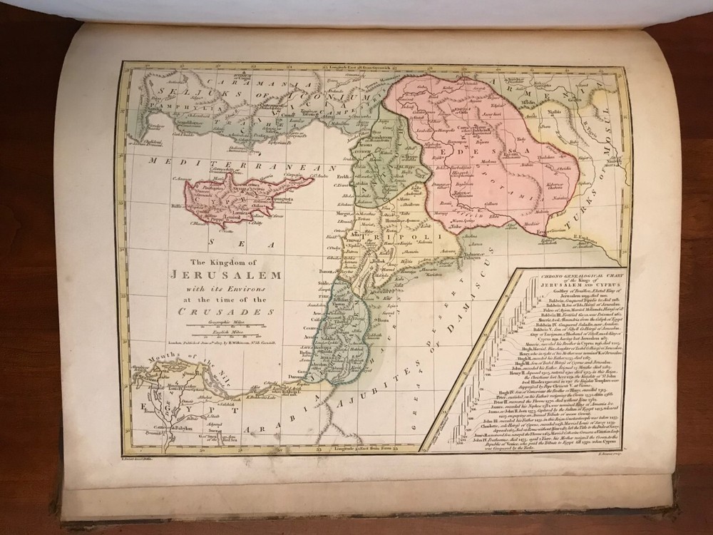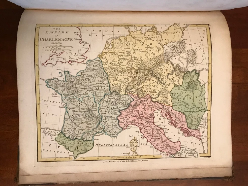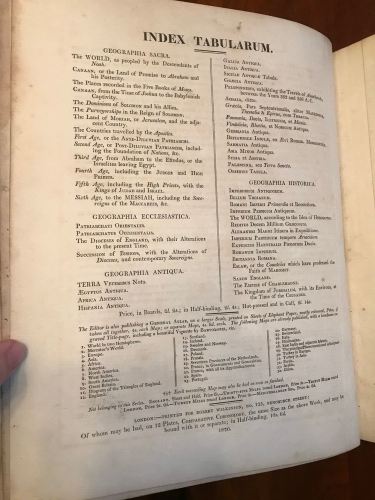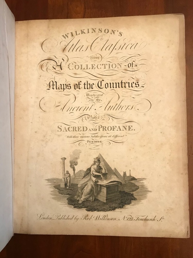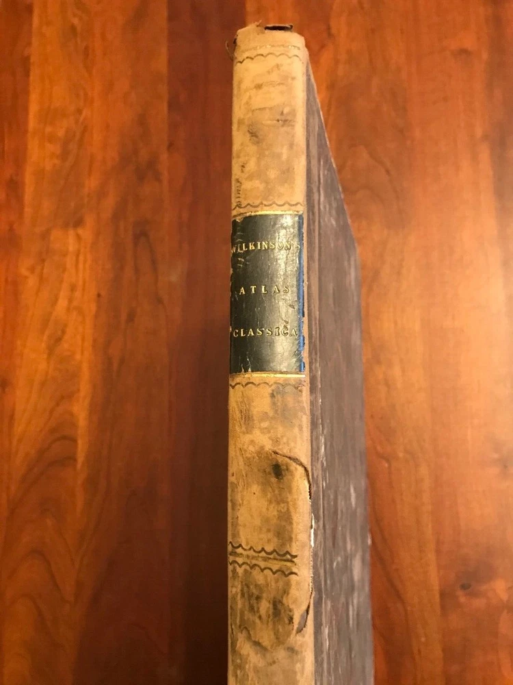Atlas Clasica: Being a Collection of Maps of the Countries Mentioned by the Ancient Authors Both Sacred and Profane: With Their Various Subdivisions at Different Periods By Robert Wilkinson Published: London, 1820. Wilkinson's atlas classica: being a collection of maps of the countries mentioned by the ancient authors both sacred and profane with their subdivisions at different periods ... Engraved titlepage, 46 engraved hand coloured maps ( including 7 double page), 7 engraved hand coloured tables (including 1 double page fldg.), original half roan, marbled boards, covers worn, inner hinges loosening. Previous owner bookplate on front pastedown. Not Ex-Lib. I've done my best to describe the book, but if you have additional questions, please don't hesitate to send me an e-mail.