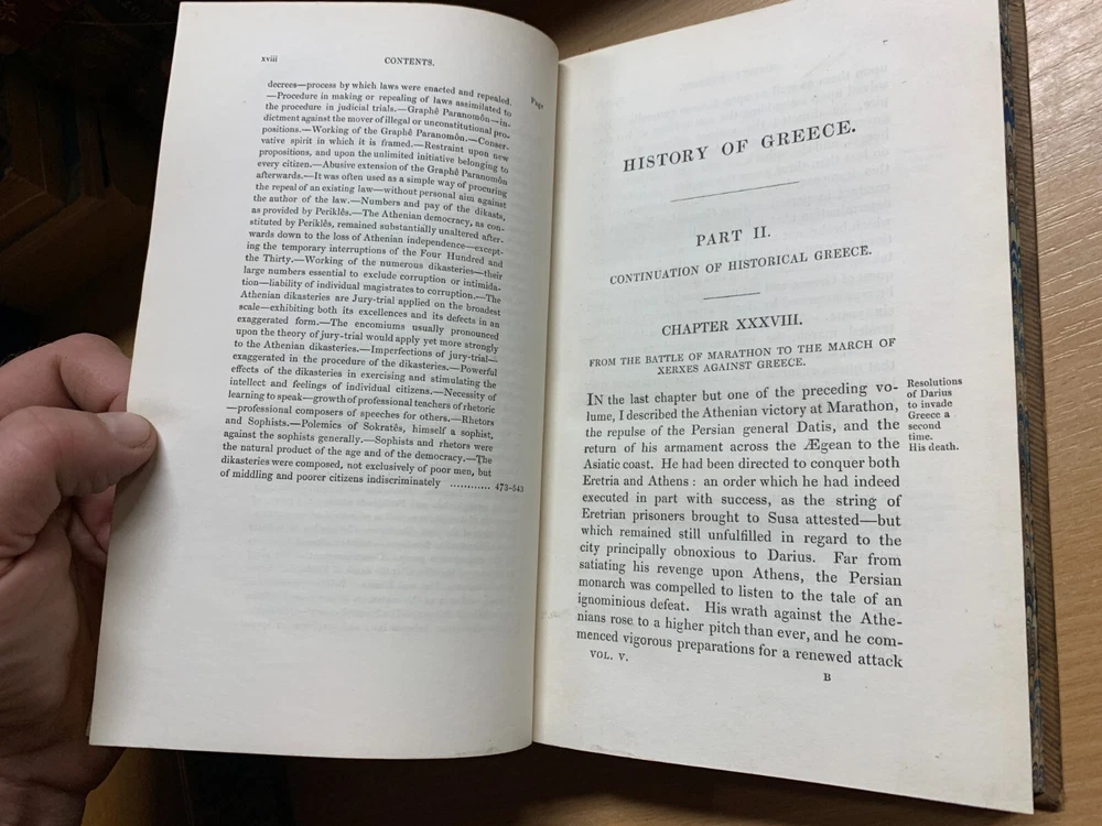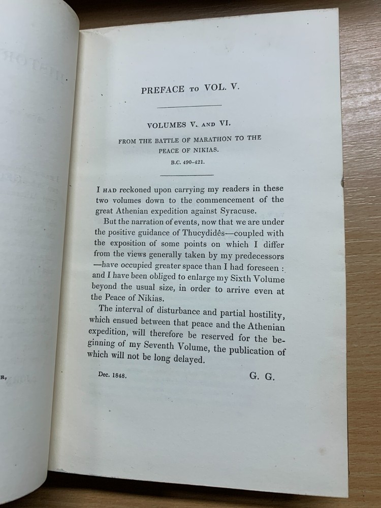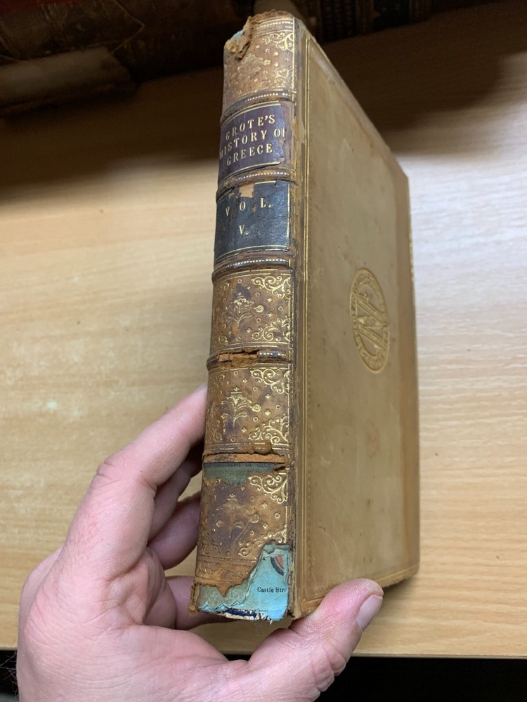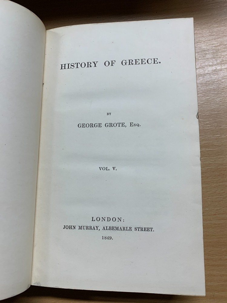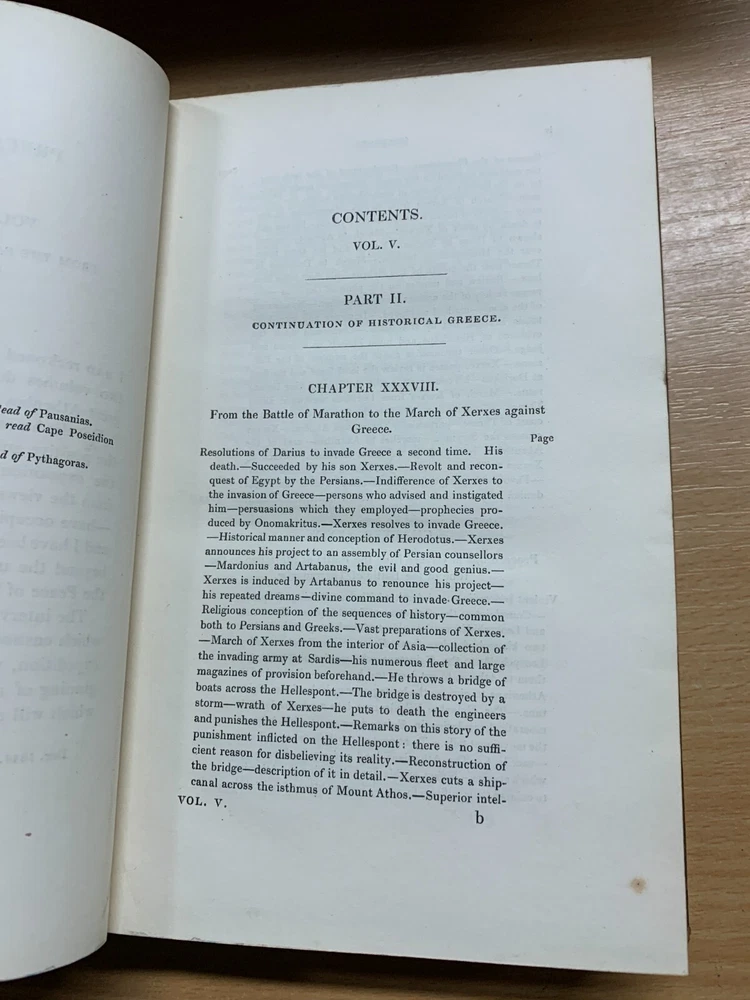 *RARE* 1849 "HISTORY OF GREECE" GEORGE GROTE VOLUME 5 WITH MAP ANTIQUE BOOK (P6) Great *RARE* antique leather fine binding hardback book from 1849 by George Grote on the history of Greece. Volume 5 only. Photo 3 shows the lovely marbled design page edges. Contains illustrations including a fold out map (see photo 22). Photo 2 shows a missing section on the bottom of the spine cover but does not impact on page binding inside. Photo 23 shows some wear to the top of the spine cover. Photo 24 shows antique pen writing from 1858 on an initial blank page but binding and other pages inside are in superb condition especially as the book is 175 years old. NOTE: THIS IS THE ONLY COPY FOR SALE ON EBAY (UK & INTERNATIONALLY) AT TIME OF LISTING! Measures 22cm tall x 14cm wide. Weighs just over 1kg. See photos for most of the content pages and examples of pages inside. (P6) - Ignore this, it is my International weight pricing code. Discounted P&P for multiple purchases! (either send me an invoice request or i'll refund extra back to you) PLEASE READ BEFORE BUYING: I try my best to genuinely describe good & bad points (if any!). Happy to answer any questions before you purchase. I post items same day if purchased before 10am (UK time) otherwise it will be posted the next day except for Wednesdays (I work from home Wednesdays), weekends & public holidays. Please select 1st class if you require 1st class postage. If overseas, if you want your item tracked, contact me for price then if happy, i'll add the tracking option to the listing. Im a friendly genuine seller. Postage price includes cost of packaging. Positive feedback always left for buyers. Feel free to sign up to my eBay Shop newsletter to see new listings (new items are added nearly every day). Happy bidding!! View more great items Great *RARE* antique leather fine binding hardback book from 1849 by George Grote on the history of Greece. Volume 5 only. Photo 3 shows the lovely marbled design page edges. Contains illustrations including a fold out map (see photo 22). Photo 2 shows a missing section on the bottom of the spine cover but does not impact on page binding inside. Photo 23 shows some wear to the top of the spine cover. Photo 24 shows antique pen writing from 1858 on an initial blank page but binding and other pages inside are in superb condition especially as the book is 175 years old. I post items same day if purchased before 10am (UK time) otherwise it will be posted the next day except for Wednesdays (I work from home Wednesdays), weekends & public holidays. If overseas, if you want your item tracked, con