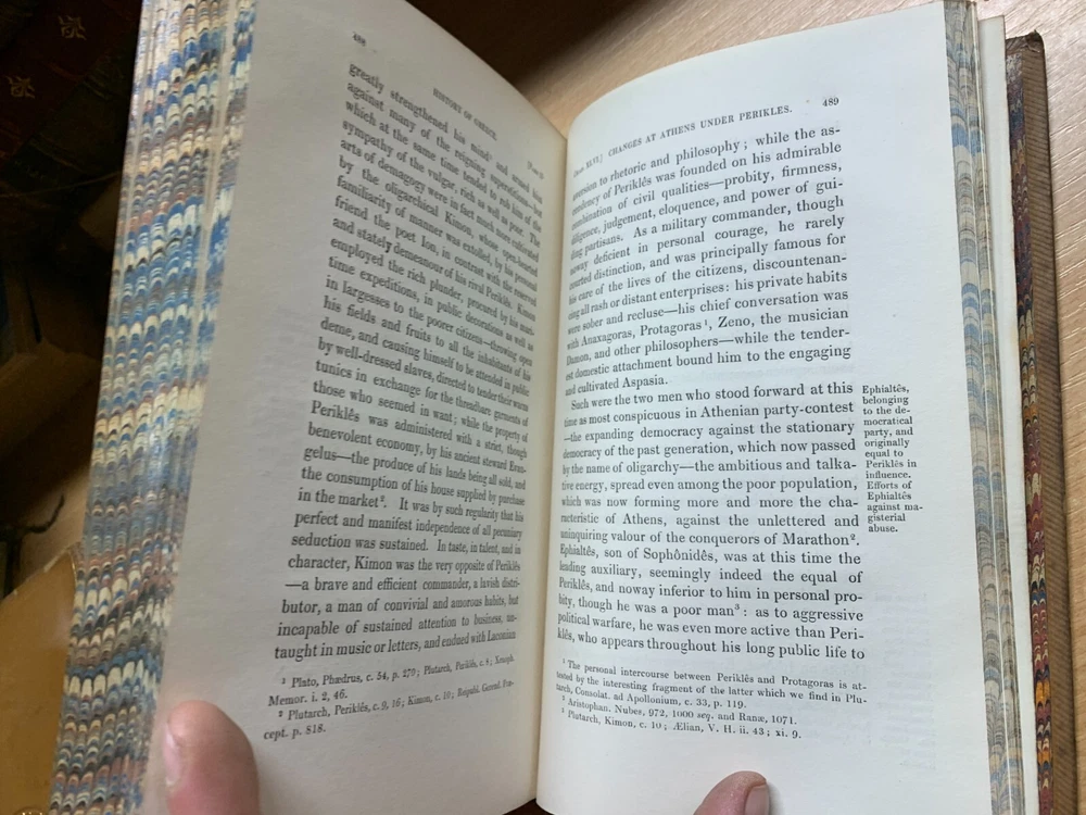 This antique gem is a must-have for history lovers! The 1849 leather-bound volume by George Grote features stunning marbled edges, a fold-out map, and rich illustrations. Despite minor wear on the spine, the binding is solid, and the handwritten notes add charming character. A rare piece of history in fantastic condition—perfect for collectors!