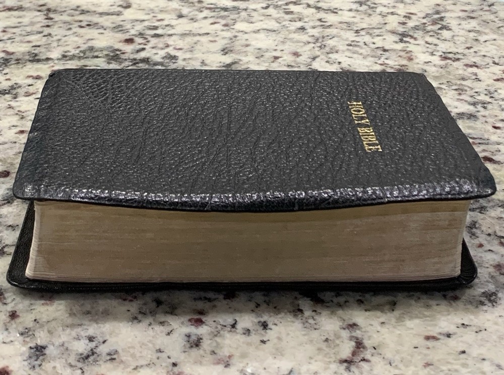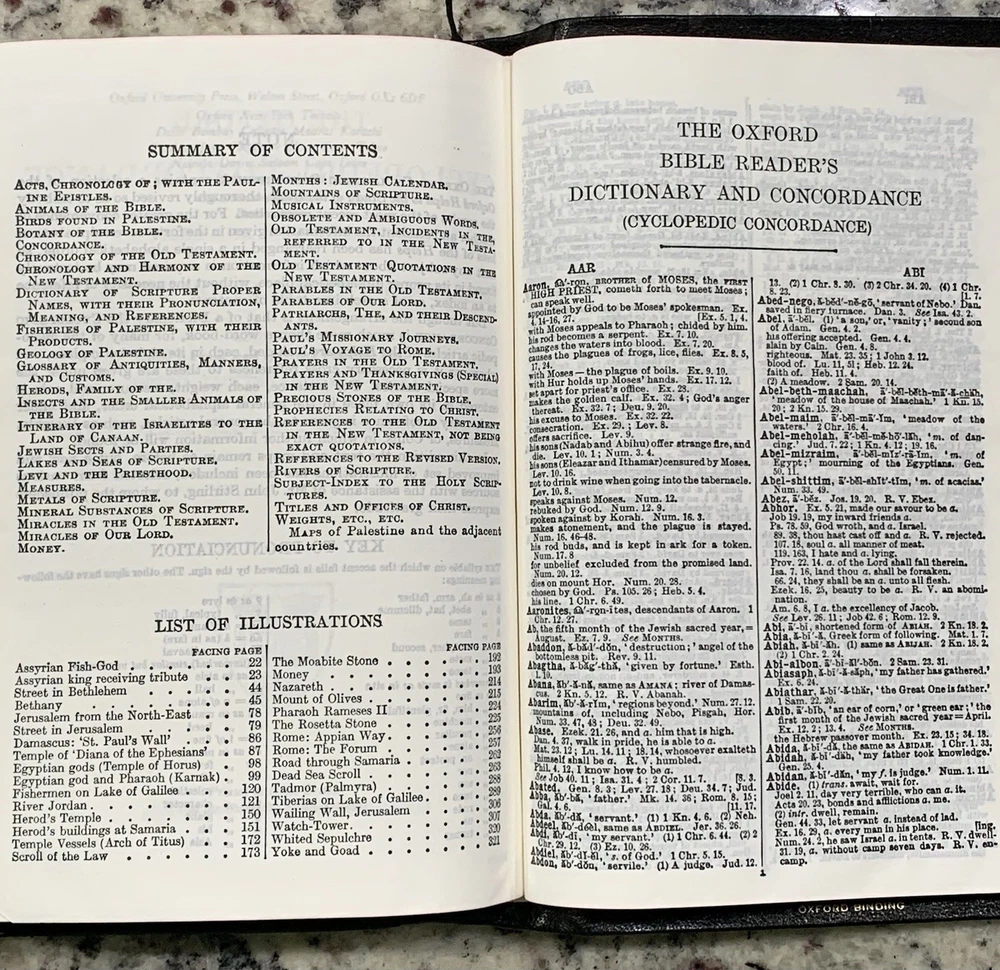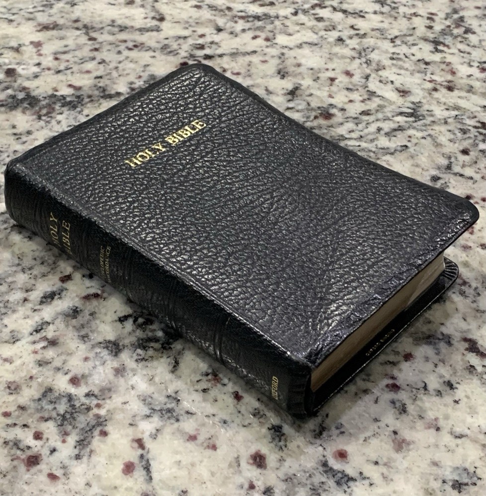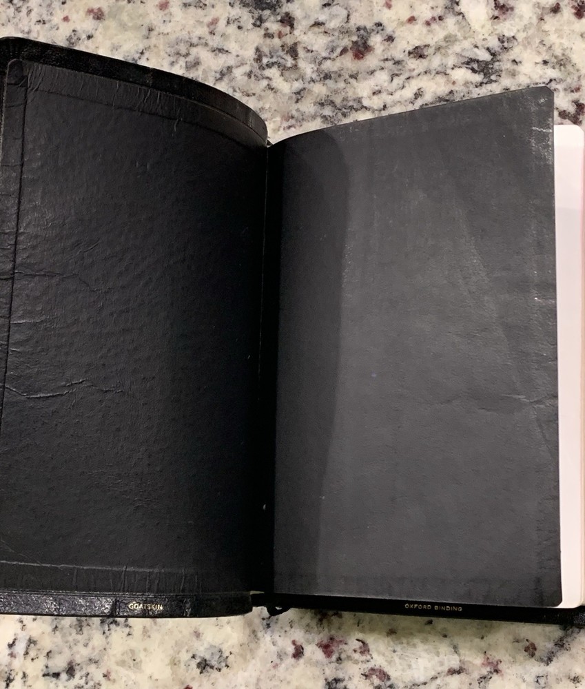 It has an in-depth Concordance with historical pictures and tables. At the back in Maps 1-5 the binding is visible yet intact. The bottom half of New Testament title page is torn off. This Bible is in really good condition with some pages having minimal markings, corner folds, creases, and the faint aroma of perfume. See Photos for details. Dive into the richness of Christian theology with RL Allan's Oxford Binding King James Bible. This edition, the Brevier Clarendon, is crafted with care by R.L. Allan & Son Publishers and boasts a luxurious goatskin format. It is a treasure trove for both personal reflection and scholarly study, complete with a cyclopedic concordance and maps that enhance understanding of biblical narratives. Measuring at 7.5 inches in length, 5.3 inches in width, and a 1.5-inch spine, this Bible is both portable and substantial. It is published in English by Oxford University Press, Incorporated and is a testament to the dignity of the Authorized King James Version Holy Bible. Whether for daily reading or in-depth analysis, this volume is an essential addition to any Christian's library.