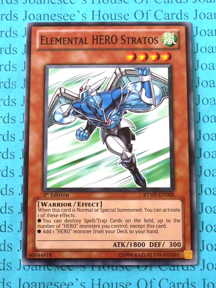 This is the Common Wind Warrior Elemental HERO Stratos RYMP-EN008 1st Edition English (EU) Mint/NMint Condition Totally Original Konami (or your money back!) I will deliver in safe packaging to keep it in perfect condition. Ideal for players and collectors alike. Check out my other items! I will combine postage costs for multiple purchases. Sign up for my email newsletters by adding my eBay Shop to your favourites