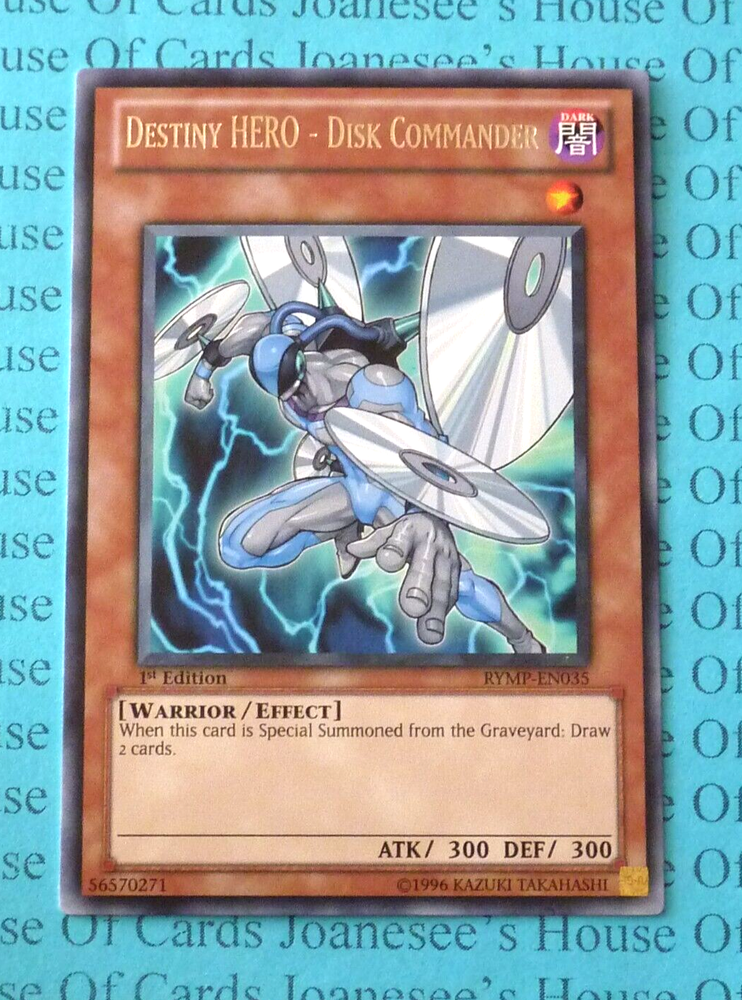 This is the Common Dark Warrior Destiny HERO - Disk Commander RYMP-EN035 1st Edition English (EU) Mint/NMint Condition Totally Original Konami (or your money back!) I will deliver in safe packaging to keep it in perfect condition. Ideal for players and collectors alike. Check out my other items! I will combine postage costs for multiple purchases. Sign up for my email newsletters by adding my eBay Shop to your favourites