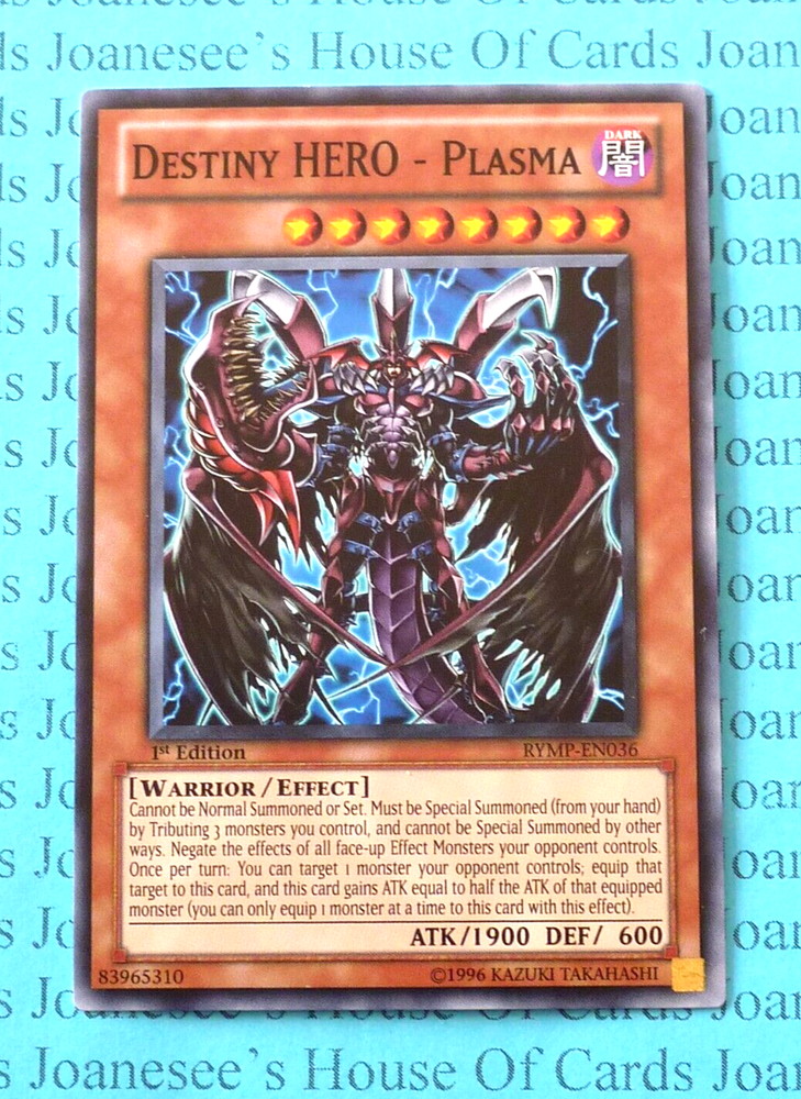 This is the Common Dark Warrior Destiny HERO - Plasma RYMP-EN036 1st Edition English (EU) Mint/NMint Condition Totally Original Konami (or your money back!) I will deliver in safe packaging to keep it in perfect condition. Ideal for players and collectors alike. Check out my other items! I will combine postage costs for multiple purchases. Sign up for my email newsletters by adding my eBay Shop to your favourites
