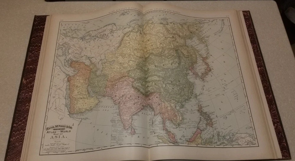 This antique Rand McNally & Co. Indexed Atlas of the World from 1896 is a must-have for any collector or cartography enthusiast. The beautiful leather binding and gilt edges make this book a true gem. The detailed maps and indexes provide a comprehensive reference for the world's geography. The book covers a range of topics including maps of various countries accompanied with informative text, making it a great addition to any reference collection. This book is a true piece of history and a testament to the quality of cartography in the early 20th century. Add it to your collection today!