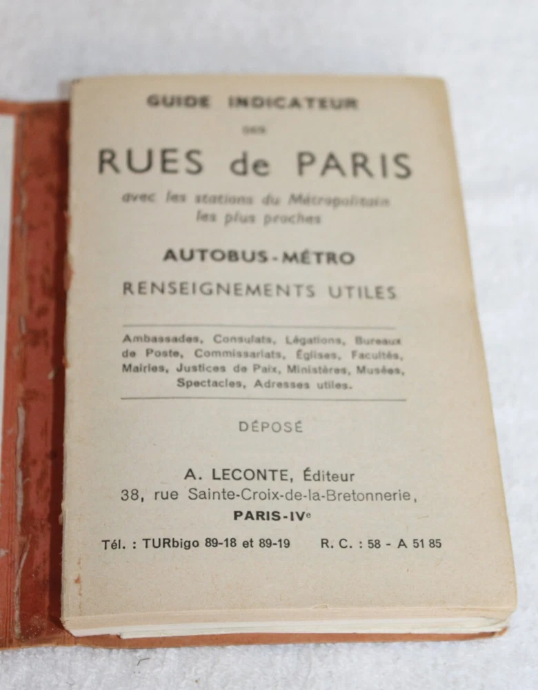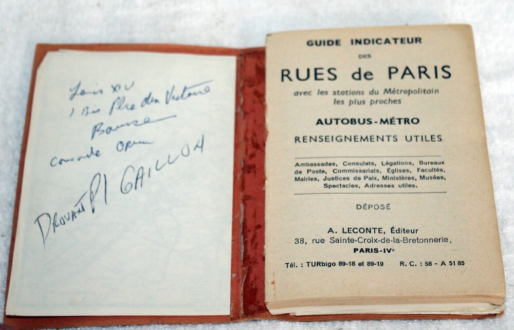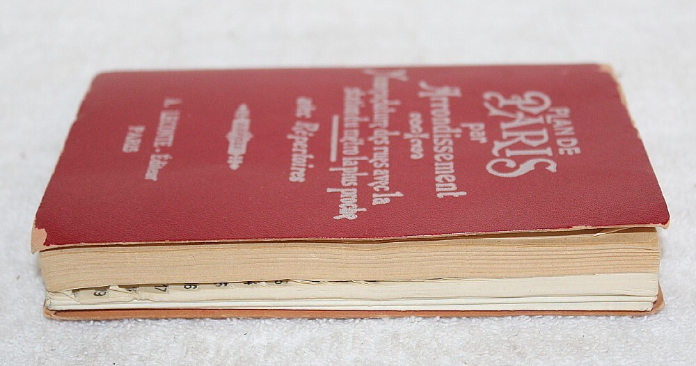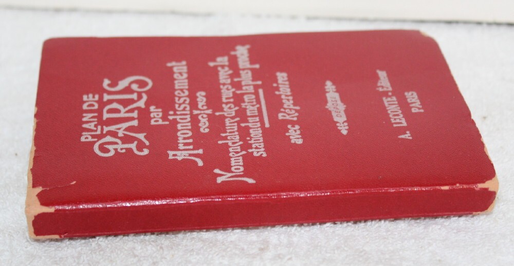 Hello, and many Thanks to all the users that helped us make it to our 26th year anniversary here on ebaY !! You are bidding on 1- Rare Vintage Plan de Paris Par Arrondissement Pocket Leather Map Guide ~ Inside front cover note with writing in French ~ Standard Paris Guide early 20th century. A. Leconte and Guilmin ~ Measures approx. 3.75"W x 5.75"H x 0.75"D ~ Nice piece with Numerous Folded Maps ~ I assume all maps are present but there is not a guide to check ~ A antique nice piece from Late 19th or early 20th century ~ Minor wear from age but very nice overall. Please look at the photos, ask for more if you need them, and always ask questions before buying. We only take returns because ebaY forces us too. Please realize, if the item you are sent is altered in any way, (we leave a removable distinguishing mark somewhere on all of our items), we will not honor a refund and will file a fraud complaint with ebay. Returns are only accepted if the item is not as described, and at the expense of the buyer for the cost of the return shipping. No expressed guarantee unless otherwise noted. We are honest sellers for over 26 years selling used vintage items that are not replaceable with another item, so exchanges are never an option. Thank you, Bill. Payment info: Pick-up items only must be paid by Cash or PayPal presented at time of pick-up, NO Checks for pick-ups. Shipping info: Buyer pays $2.00 packing fee plus shipping cost from 28358 within the US (48 states). Shipping weight is approx. 2 pounds. Pick-up is also welcome to save any shipping & packing costs. We use either USPS or FedEx, but we do not use UPS due to rough handling. This cost could be less depending on where you are. E-mail us your zip code to see if you qualify for a reduced rate, as the price quoted is to the furthest point, California. Only if we quote a fixed shipping cost in this description does this apply. Packing fees are a fixed cost and are not negotiated. Packing fees over seas could be higher, but not necessarily. SHIPPING COSTS OUTSIDE OF THE USA AND OVERSEAS WILL BE MORE - PLEASE E-MAIL FOR YOUR EXACT COSTS BEFORE BIDDING PLEASE CHECK OUR OTHER AUCTIONS and ALWAYS BID HAPPY. Please Note: You must contact us prior to bidding if you have 5 feedback or less, or if you have registered as a new user less than 6 months ago. If you don’t, your bid will be cancelled and you will be blocked from bidding. We describe each of our items as best we can, we will answer your questions A.S.A.P. so please E-mail us with any questions or concerns before the end of the auction, because all sales are final. We can not be responsible for items lost or damaged during shipping, therefore insurance is strongly recommended to protect your investment, although shipping costs are not covered by insurance and cannot be refunded in cases of damage. OUR TERMS: All Sales are Final. No returns. We will contact you within 48 hours of the end of the auction. Please acknowledge our E-mail with your address so we can pack your item, we expect payment to be sent out at this time, unless prior arrangements have been made. If we do not hear from you after the first E-mail we will try one more time. If we do not hear from you within 3 days of the close of the auction, we will notify Ebay, leave negative feedback and relist the item. We leave feedback for every transaction no matter how small. We will leave you feedback after receiving payment, so you will know it has been received. Please leave feedback for us after your item arrives, this lets us know you have your item...If you do not receive your item or there is a problem of any kind please contact us immediately.
