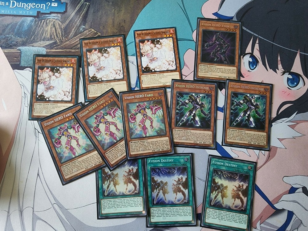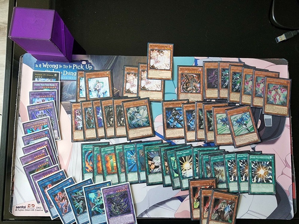 Ready-for-use Vision Hero Deck. Deck list below, prices are straight from TCGPlayer. Faris listed on website as $50, there's 3 in this deck guarantee. Ash Blossom & Joyous Spring listed as $27, also 3 guarantee. Asking for $375 for full deck. You get all cards listed below along with a ultimate guard deck box. Will ship priority to get auto tracking. You pay for bubble envelope and subsidizing the shipping fee. Thanks for looking! TOTAL: 59 cards - $413.70 3 Vision HERO Faris [BLHR] 2 Vision HERO Increase [BLHR] 1 Vision HERO Vyon [BLHR] 1 Destiny HERO - Disk Commander [LDK4] 2 Destiny HERO - Malicious [LDK4] 2 Elemental HERO Stratos [BLHR] 2 Elemental HERO Solid Soldier [CT15] 2 Elemental HERO Shadow Mist [LDK4] 1 Destiny HERO - Celestial [LDK4] 1 Destiny HERO - Plasma [LDK4] 1 Destiny HERO - Drawhand [DANE] 1 Dark Armed Dragon [SDDC] 3 Ash Blossom & Joyous Spring [SDSB] 1 Effect Veiler [SDPL] 1 Effect Veiler [YS17] 3 Super Polymerization [SDCR] 3 Fusion Destiny [DANE] 2 Mask Change [LDK4] 1 Miracle Fusion [RYMP] 2 Destiny Draw [LDK4] 1 Reinforcement of the Army [DASA] 1 Monster Reborn [] 1 Polymerization [LDK4] 2 E - Emergency Call [LC02] 1 Monster Gate [SDDC] 3 Ghost Ogre & Snow Rabbit [DUPO] 1 Destiny HERO - Dangerous [BLHR] 1 Xtra HERO Wonder Driver [LDK4] 1 Xtra HERO Dread Decimator [LDK4] 2 Xtra HERO Cross Crusader [DANE] 1 Masked HERO Anki [LDK4] 1 Masked HERO Blast [RATE-SE] 2 Masked HERO Dark Law [LDK4] 1 Elemental HERO Absolute Zero [BLHR] 1 Elemental HERO Escuridao [] 1 Vision HERO Adoration [BLLR] 1 Vision HERO Trinity [SHVA] 1 Starving Venom Fusion Dragon [MP17] 1 Number 39: Utopia [YS12]
