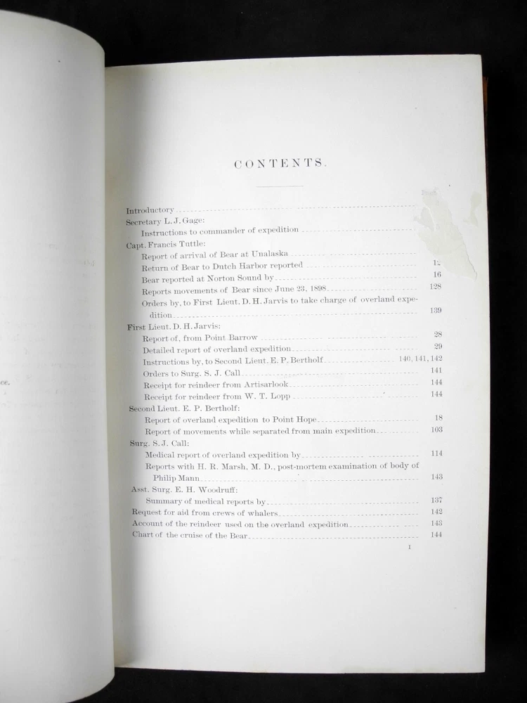 Report to the US House of Representatives 56th Congress / 2nd Session Report of the The Cruise of the US Revenue Cutter Bear and the Overland Expedition for the Relief of the Whalers in the Artic Ocean from November 27, 1897 to September 13, 1898 S13C - E S13C - E