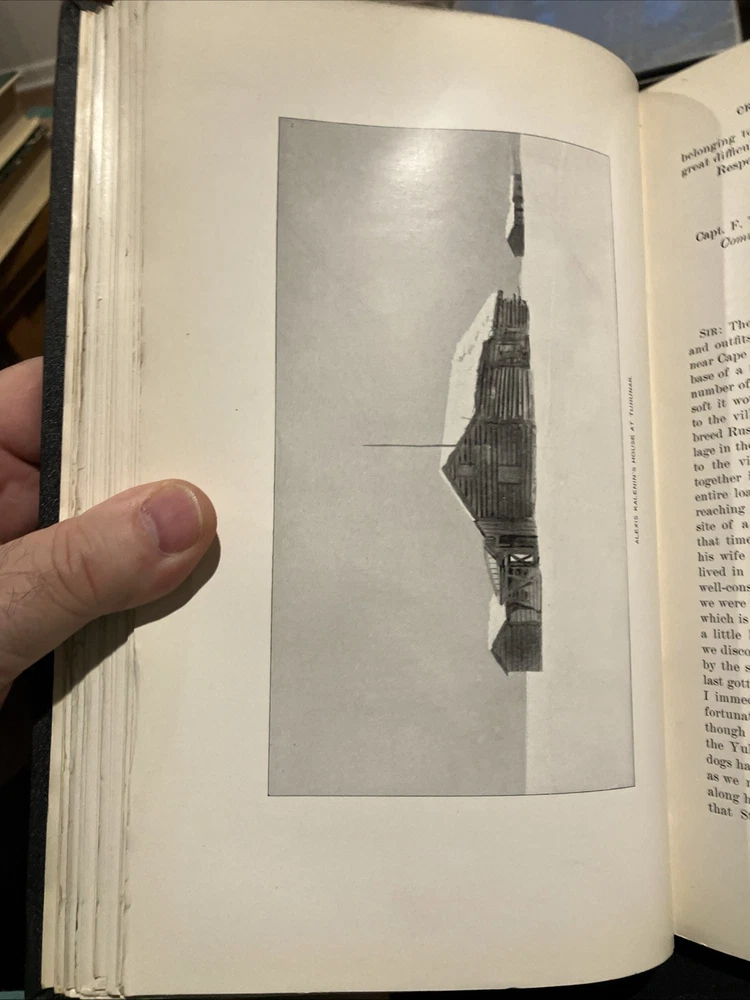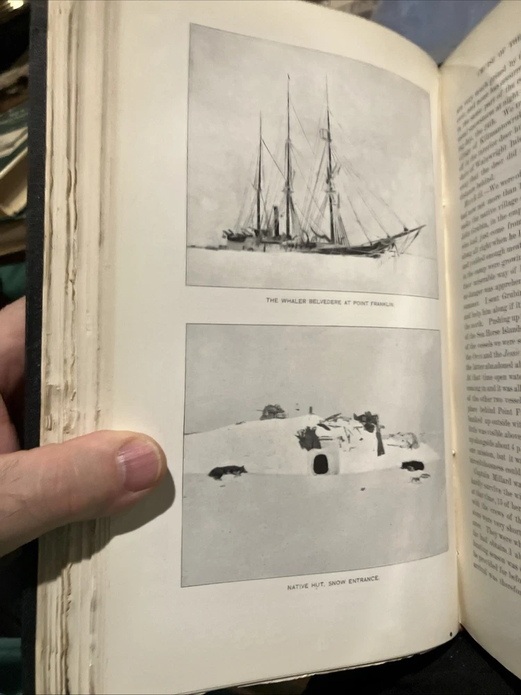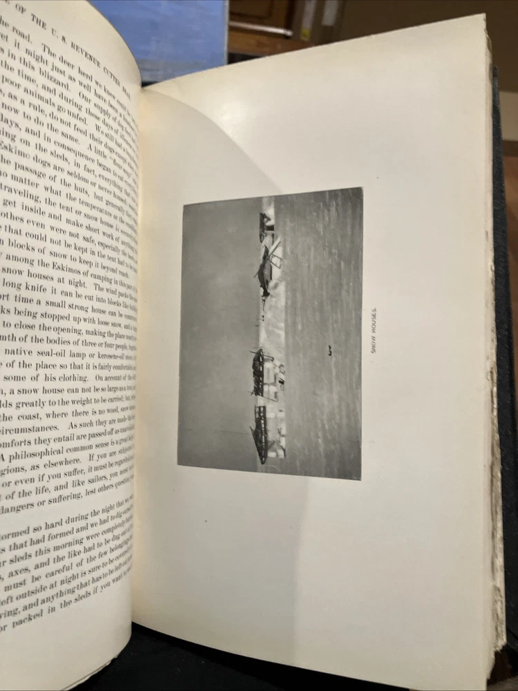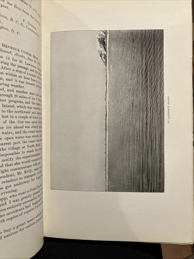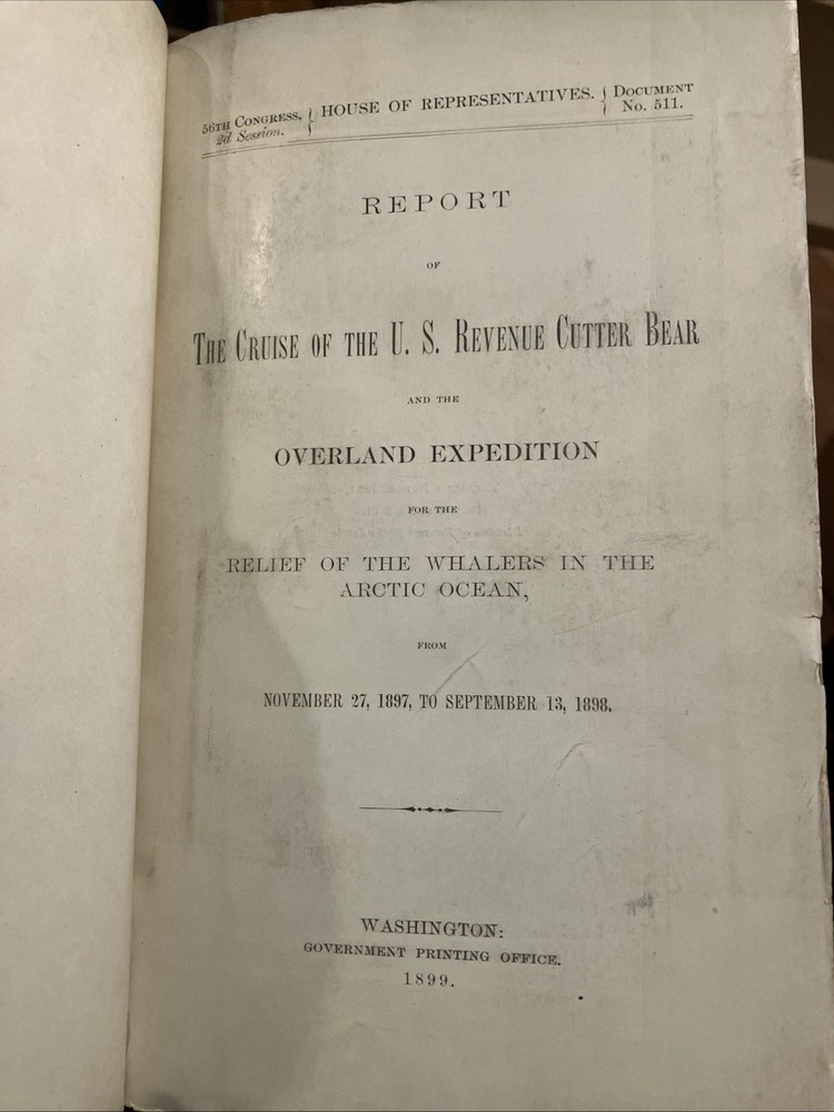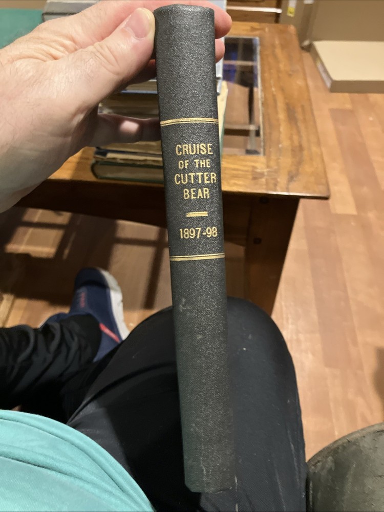 Note pages are still uncut. The "Report of the Cruise of the US Revenue Cutter Bear" published by the US Government Printing Office in 1899 is a valuable piece of history detailing the voyage of the US Revenue Cutter Bear in Alaska. This half-bound book with a leather spine and corners features a color map of Alaska, adding a visual element to the report. Written in English, this collectible item provides valuable insights into the history of this significant cruise.
