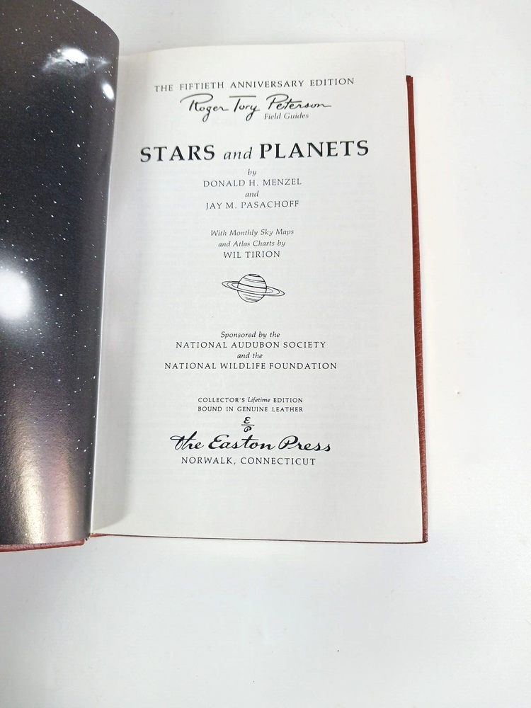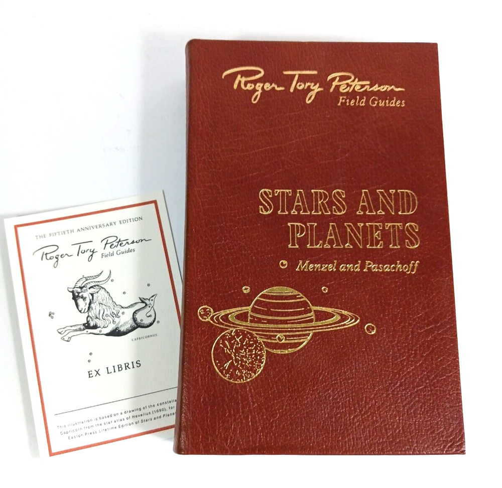 Roger Tory Peterson Stars and Planets Star maps Guidebook. Easton Press. 1984 50th Anniversary Edition. Leather binding. Bookplate included. Gilt edge. Satin ribbon bookmark....