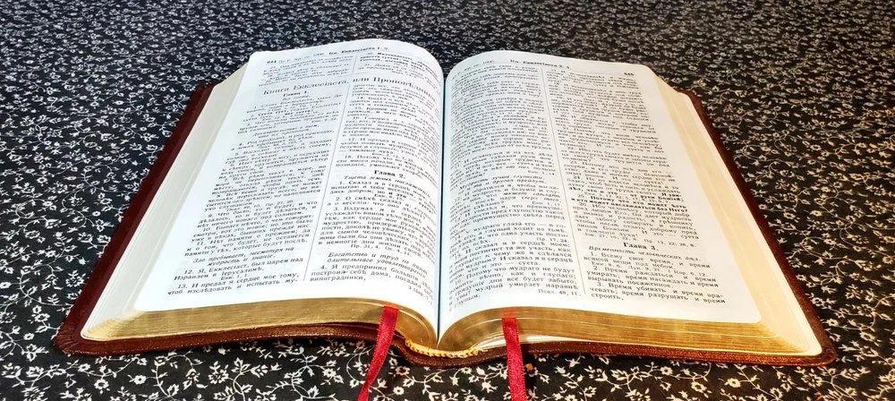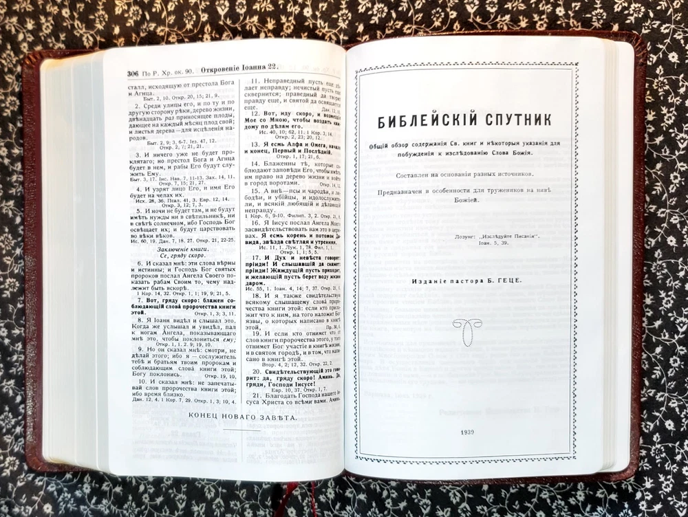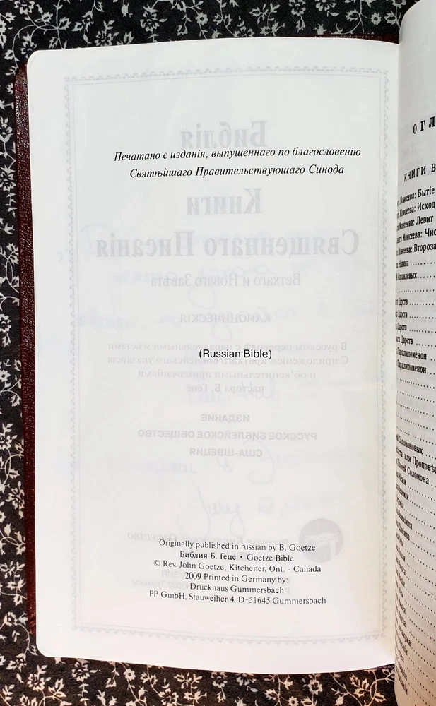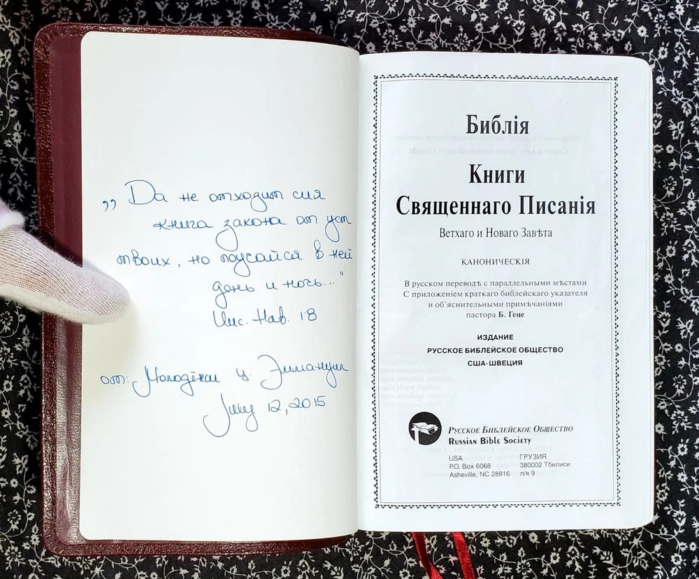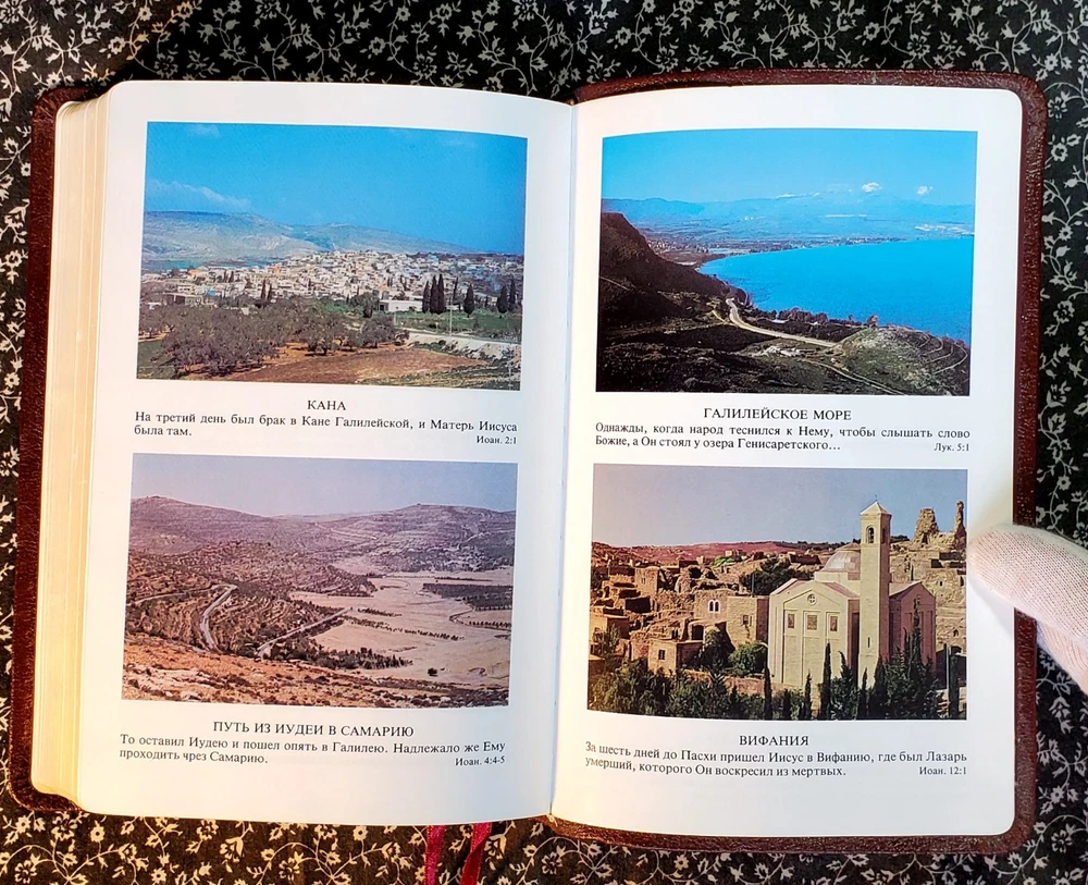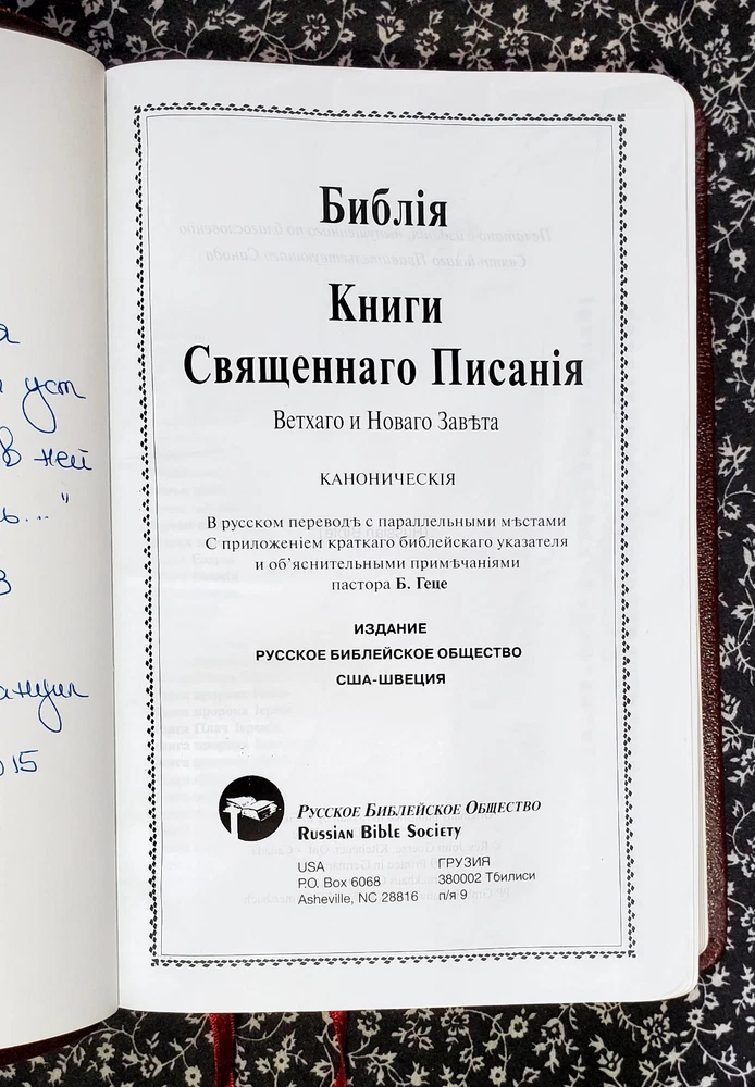 This is a great Russian Bible! It's in good+ or better condition! No ripped, bent or missing pages. The binding is tight and the pages are bright and very clean! There is an inscription on the first blank page (pictured) No other writing or markings inside. Covers look good! Gold gilded edges have very minor soiling but look good otherwise. Comes from a Pet/Smoke free environment. Lots of life left! Solid Book! All Photos are of the actual book and not stock photos! The book in the listing is the book you'll receive. Please visit our ebay store for more great vintage and hard to find books! New items added daily!