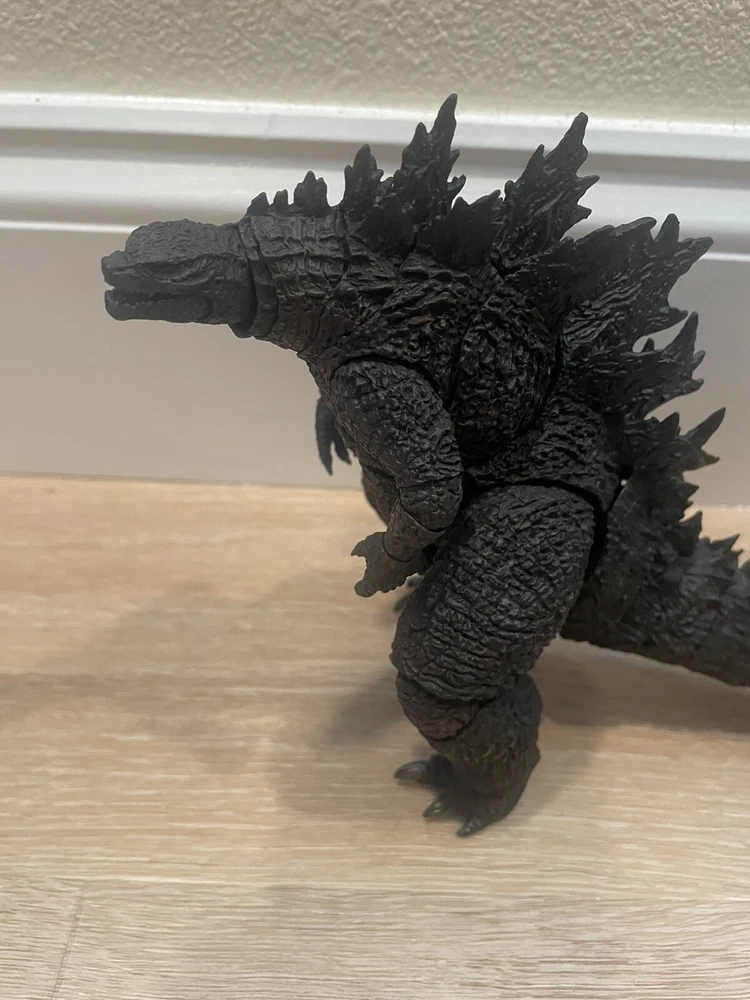 S.H. Monsterarts 2021 Godzilla repainted to be in a non-atomic breath state of Godzilla, a variation S.H Monsterarts hasn’t made since 2019, 5 years ago. No returns as this is a custom figure. This Godzilla is not a toy. The tail joint is loose. This is a common SH monster arts quality control issue. It’s not unique to this figure. Please ask any questions before purchase.