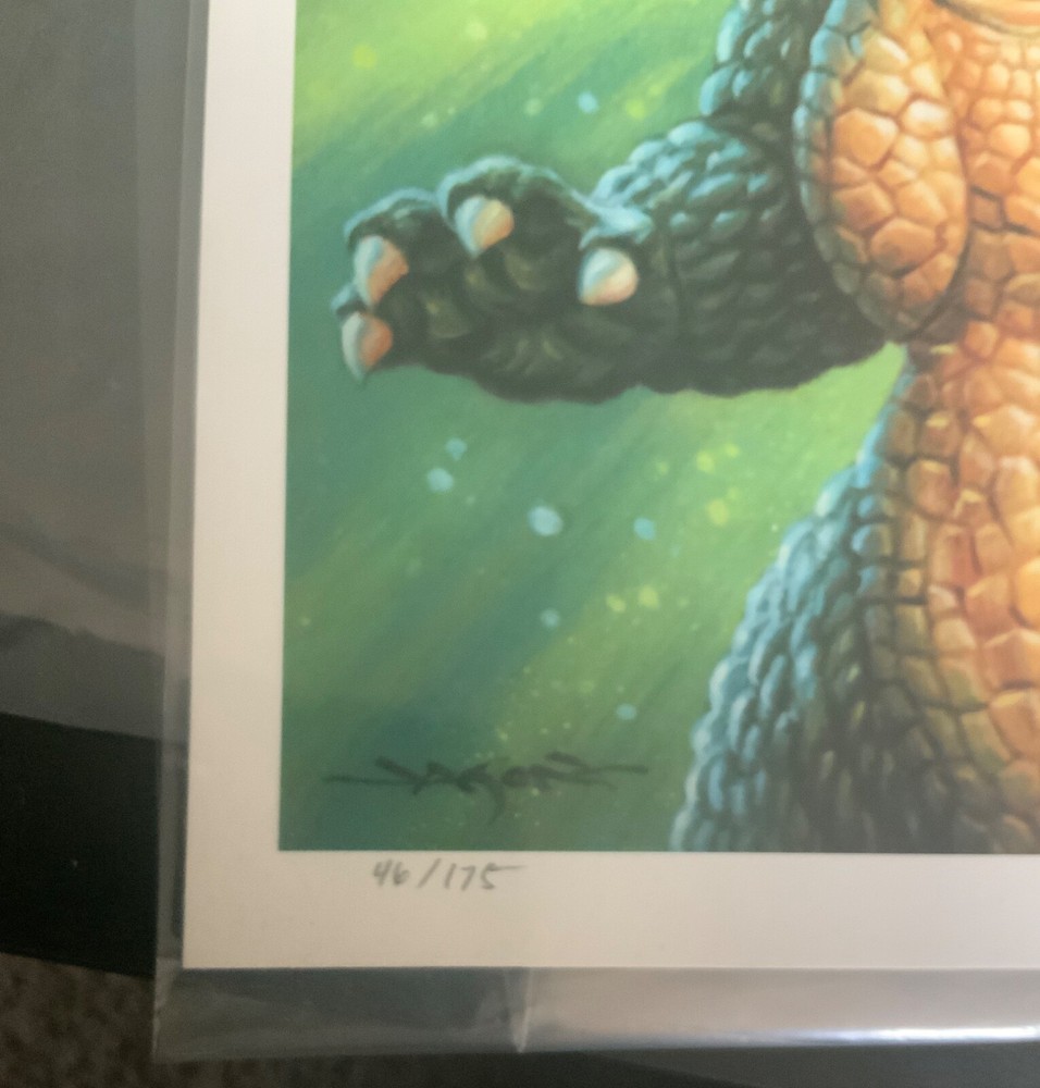 Absolutely love this piece! The colors pop beautifully and Jason Edmiston's signature makes it feel extra special. A true gem for any Godzilla fan's collection.