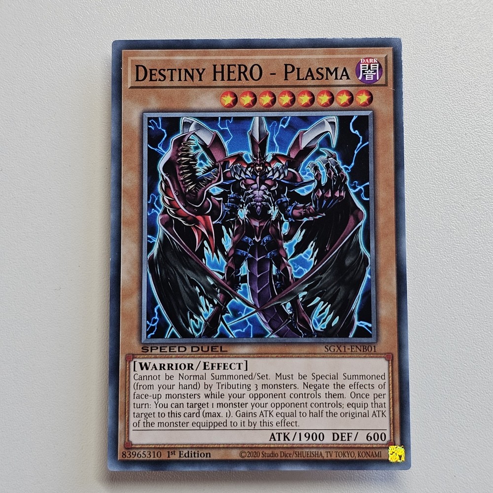 SGX1-ENB01 DESTINY HERO - PLASMA COMMON 1ST EDITION YuGiOh CARD. Condition is Ungraded. Dispatched with Royal Mail 2nd Class Letter.
