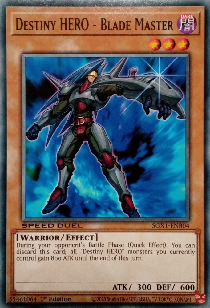 SGX1-ENB04 DESTINY HERO - BLADE MASTER COMMON 1ST EDITION ALL YU-GI-OH CARDS I SELL ARE KONAMI TOURNAMENT LEGAL. CARDS ARE ALL BRAND NEW AND IN MINT CONDITION. POSTAGE IS FREE SO YOU CAN BUY AS MANY CARDS AS YOU WANT FROM US AND NOT PAY A PENNY POSTAGE. IF YOU HAVE ANY QUESTIONS PLEASE FEEL FREE TO CONTACT ME. Track Page Views With Auctiva's FREE Counter