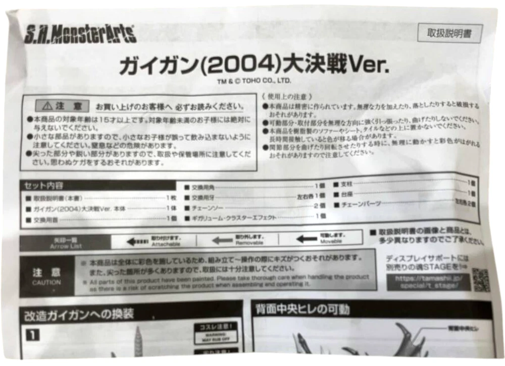 Item Title:S.H.Monster Arts Gigan Final Battle Ver Action Figure Bandai Japan Authentic Description Gigan from the Godzilla Final Wars version is now available at S.H. Monster Arts. Can reproduce the modified Geigan by recombination of each part. The flight state can be reproduced by moving the fins on the back. Bloody chainsaw is rotatable. Fully reproduce the Geigan written by recombination of parts and molding particular to the compound eye. Accessories] Various replacement parts for modified Gai-Gan Shipping Free Expedited Shipping from outside US. See detailsfor shipping International shipment of items may be subject to customs processing and additional charges. Located in: Japan.Includes 2 to 7 business days handling time after receipt of cleared payment. Please allow additional time if international delivery is subject to customs processing. International Buyers - Please Note: Import duties, taxes, and charges are not included in the item price or shipping cost. These charges are the buyer's responsibility. Please check with your country's customs office to determine what these additional costs will be prior to bidding or buying. Thank you for your understanding.
