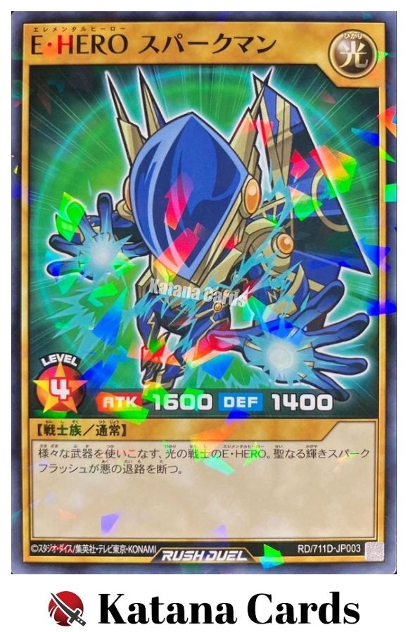 Sealed Yugioh Cards | Elemental HERO Sparkman (Rush Duel) Parallel Rare | RD/711 C ondition Sealed (New) Yugioh Cards Check our Yugioh cards here. D iscounts!!! Buy more than 2 cards in my store, Save 3 - 5% off for each cards. Yugioh Cards Check our Yugioh cards here. Discounts are applied automatically by simply adding the product to your cart! If the discount is not applied automatically due to eBay's system error, please inform us of the "Discount Error" in the message after purchasing the item. We will manually apply the discount based on the number of items purchased. S hipping We usually ship within 3 - 5 business days of receiving cleared payment. Economy Shipping - No Tracking Number - It takes 7 - 30 days after shipment. Expedited Shipping - Tracking Number - It takes 3 - 10 days after shipment. If you buy more than 2 cards and choose Expedited Shipping, please select Expedited Shipping for just 1 item. We will ship the items in one package. P ayment We can be contacted at any time through eBay messages if you have any questions, comments or product requests. We will respond to you within 24 hours and do our best to help you out! We encourage our customers to contact us with any questions or concerns! We'd like to be sure you are completely satisfied with your purchase. We do not mark merchandise values below value or mark items as gifts. US and International government regulations prohibit such behavior. I nternational Buyers - Please Note Import duties, taxes, and charges are not included in the item price or shipping cost. These charges are the buyers responsibility. Please check with your country's customs office to determine what these additional costs will be prior to bidding or buying.